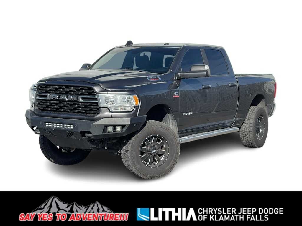 ENGINE: 6.7L I6 CUMMINS TURBO DIESEL Selective Catalytic Reduction (Urea), Dual 730 Amp Maintenance Free Batteries, Cummins Turbo Diesel Badge, Heavy Duty Engine Cooling, Supplemental Heater, Tow Hooks, Diesel Exhaust Brake, Front Bumper Sight Shields, Capless Fuel Fill w/o Discriminator, Distribution Services Tracking, LEVEL C EQUIPMENT GROUP Rear Window Defroster, Rear View Auto Dim Mirror, LED Tail Lamps, Power Adjustable Pedals, Leather Wrapped Steering Wheel, Rear Power Sliding Window, Rear Dome w/On/Off Switch Lamp, Front Fog Lamps, Glove Box Lamp, Footwell Courtesy Lamp, 115V Auxiliary Rear Power Outlet, Media Hub w/2 Charge Only USBs, Heated Front Seats, Heated Steering Wheel, Foam Bottle Insert (Door Trim Panel), Wheels: 18 x 8.0 Polished Aluminum, Dampened Tailgate, Security Alarm, Big Horn IP Badge, Locking Lower Glove Box, Remote Start System, Steering Wheel Mounted Audio Controls, Dual Glove Boxes, Air Conditioning ATC w/Dual Zone Control, Universal Garage Door Opener, 115V Auxiliary Front Power Outlet, Exterior 115V AC Outlet, 400W Inverter, Cluster 7.0 TFT Color Display, 2nd Row In Floor, RADIO: UCONNECT 5 NAV W/8.4 DISPLAY Off-Road Information Pages, Disassociated Touchscreen Display, HD Radio, For Details, Visit DriveUconnect.com, For More Info, Call 800-643-2112, Air Conditioning ATC w/Dual Zone Control, GPS Navigation, SiriusXM w/360L, All Radio Equipped Vehicles, Connected Travel & Traffic Services, All R1 High Radios, Alexa Built-In, MOPAR SPRAY IN BEDLINER, 9 ALPINE SPEAKERS W/SUBWOOFER, ANTI-SPIN DIFFERENTIAL REAR AXLE, TRANSMISSION: 6-SPEED AUTOMATIC (68RFE) Chrome Accent Shift Control.