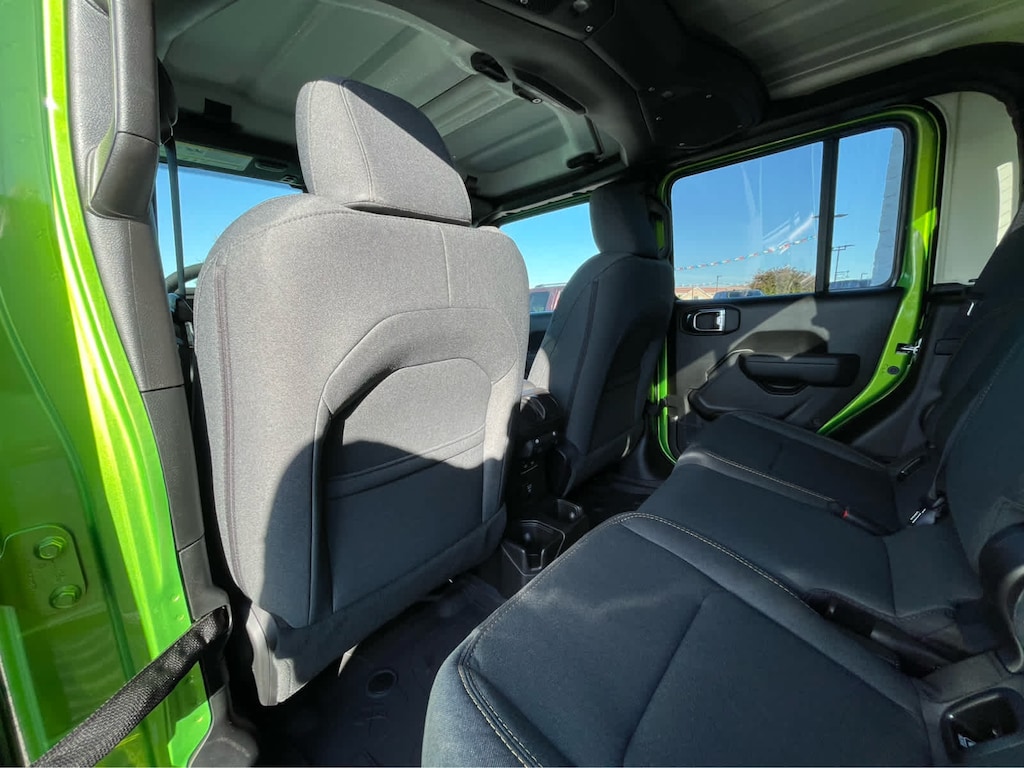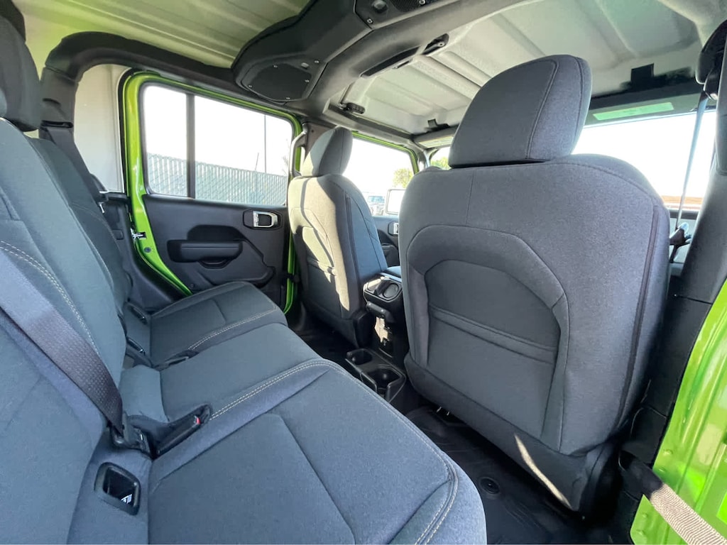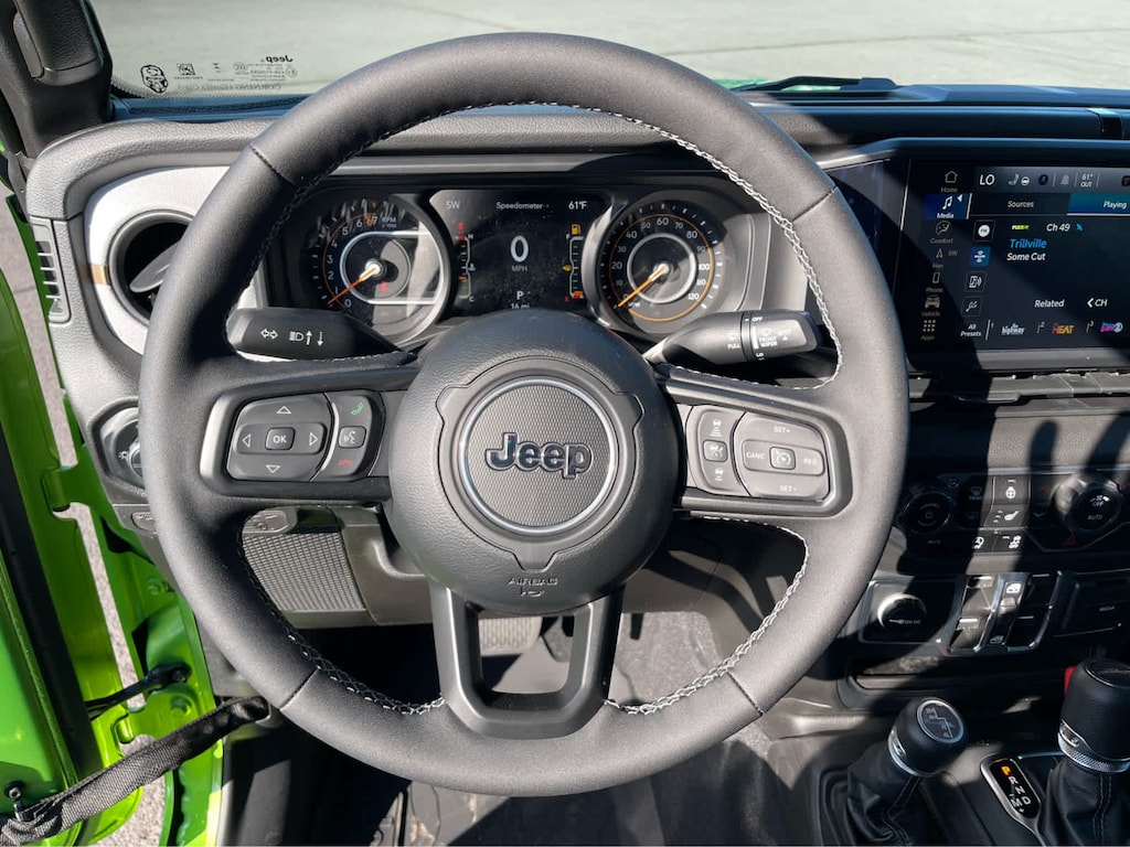QUICK ORDER PACKAGE 24S SPORT S Engine: 3.6L V6 24V VVT UPG I w/ESS, Transmission: 8-Speed Automatic (850RE), Advanced Brake Assist, Power Heated Mirrors, Enhanced Adaptive Cruise Control, Automatic Headlamps, Deep Tint Sunscreen Windows, Premium Wrapped Steering Wheel, Security Alarm, Sun Visors w/Illuminated Vanity Mirrors, Full Speed Forward Collision Warning Plus, CONVENIENCE GROUP Emergency/Assistance Call, Front Door Locks 2-Door Passive Entry, Body Color Fender Flares (2-Piece), Remote Start System, Cluster 7.0 TFT Color Display, Universal Garage Door Opener, Daytime Running Lamp System, Heated Front Seats, Air Conditioning w/Auto Temp Control, Heated Steering Wheel, Corning Gorilla Glass, MAX TOW PACKAGE W/4.10 AXLE RATIO Dana M210 Wide Front Axle, Heavy Duty Engine Cooling, Tires: 245/75R17 BSW Automatic Transmission Dueler, Conventional Differential Front Axle, GVWR: 6,500 lbs, Anti-Spin Differential Rear Axle, Black Molded-In-Color Fender Flares (2-Piece), Daytime Running Lamp System, Dana M220 Wide Rear Axle, Class IV Receiver Hitch, 4.10 Rear Axle Ratio, BLACK 3-PIECE HARD TOP Freedom Panel Storage Bag, Rear Window Defroster, Rear Sliding Window, TECHNOLOGY GROUP SiriusXM Radio Service, Alpine Premium Audio System, 400W Inverter, HD Radio, Integrated Center Stack Radio, Rear View Auto Dim Mirror, Bluetooth® Wireless Speaker, Integrated Voice Command w/Bluetooth®, Radio: Uconnect 5 Nav w/12.3 Display, GPS Navigation, GPS Antenna Input, Media Hub w/2 Charge Only USBs, SiriusXM w/360L, 115V Auxiliary Power Outlet, Connected Travel & Traffic Services, TRANSMISSION: 8-SPEED AUTOMATIC (850RE) (STD), ENGINE: 3.6L V6 24V VVT UPG I W/ESS (STD). Jeep Sport S with Mojito exterior and Black interior features a V6 Cylinder Engine with 285 HP at 6400 RPM*.