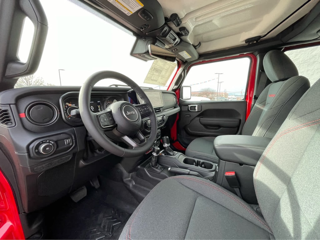 TRANSMISSION: 8-SPEED AUTOMATIC (850RE) Adaptive Cruise Control w/Stop, Selec-Speed Control, XTREME 35 TIRE PACKAGE Tires: LT315/70R17C 113/110S, Wheel Flare Extensions, MOPAR Tire Relocation Kit, Anti-Lock 4-Wheel Disc Perf Brakes, 35 Tire Suspension, MOPAR Hinge-Gate Reinforcement, MOPAR Jack Spacer, Wheels: 17 x 8 Machined w/Black Pockets, 4.56 Rear Axle Ratio, GVWR: 6,250 lbs, BODY COLOR 3-PIECE HARD TOP Freedom Panel Storage Bag, Rear Window Defroster, Rear Window Wiper/Washer, ALPINE PREMIUM AUDIO SYSTEM, CONVENIENCE GROUP Heated Steering Wheel, Universal Garage Door Opener, Heated Front Seats, TECHNOLOGY GROUP SiriusXM Radio Service, 12.3 Touchscreen Display, Integrated Off-Road Camera, HD Radio, Rear View Auto Dim Mirror, Integrated Voice Command w/Bluetooth®, Radio: Uconnect 5 Nav w/12.3 Display, GPS Navigation, SiriusXM w/360L, Connected Travel & Traffic Services, ENGINE: 3.6L V6 24V VVT UPG I W/ESS (STD). Jeep Rubicon with Firecracker Red Clearcoat exterior and Black interior features a V6 Cylinder Engine with 285 HP at 6400 RPM*.
