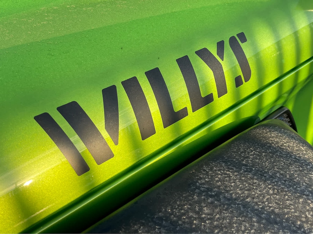 QUICK ORDER PACKAGE 22W WILLYS 2.0L I4 DOHC DI Turbo Engine w/ESS, 8-Speed Automatic 850RE Transmission, 7 & 4 Pin Wiring Harness, Conventional Differential Front Axle, 4-Wheel Drive Swing Gate Decal, Black Grille, Injection Molded Black Rear Bumper, Dana M210 Wide HD Tube Front Axle, Daytime Running Lamps LED Accents, Front LED Fog Lamps, LED Premium Reflector Headlamps, E-Locker Rear Axle, Corning Gorilla Glass, Security Alarm, Class II Receiver Hitch, Mold In Color Bumper w/Gloss Black, Advanced Brake Assist, Automatic Headlamps, Off-Road Plus Mode, Willys Hood Decal, Full Speed Forward Collision Warning Plus, Rock Protection Sill Rails, Power Heated Mirrors, Enhanced Adaptive Cruise Control, Auxiliary Switches, Dana M220 Wide Rear Axle, Molded in Color Rubicon Highline Flare, Premium, 8-SPEED AUTOMATIC 850RE TRANSMISSION Adaptive Cruise Control w/Stop, Anti-Lock 4-Wheel Disc Brakes, Integrated Radar Camera Module (IRCM), Dana M200 Rear Axle, Selec-Speed Control, BLACK 3-PIECE HARD TOP Freedom Panel Storage Bag, Rear Window Defroster, Rear Window Wiper/Washer, CONVENIENCE GROUP Emergency/Assistance Call, 2-Door Passive Entry, Front Door Locks, Cluster 7.0 TFT Color Display, Universal Garage Door Opener, Heated Front Seats, Air Conditioning w/Auto Temp Control, Heated Steering Wheel, Air Filtering, 2.0L I4 DOHC DI TURBO ENGINE W/ESS. Jeep Willys with Mojito Clearcoat exterior and Black interior features a 4 Cylinder Engine with 270 HP at 5250 RPM*.