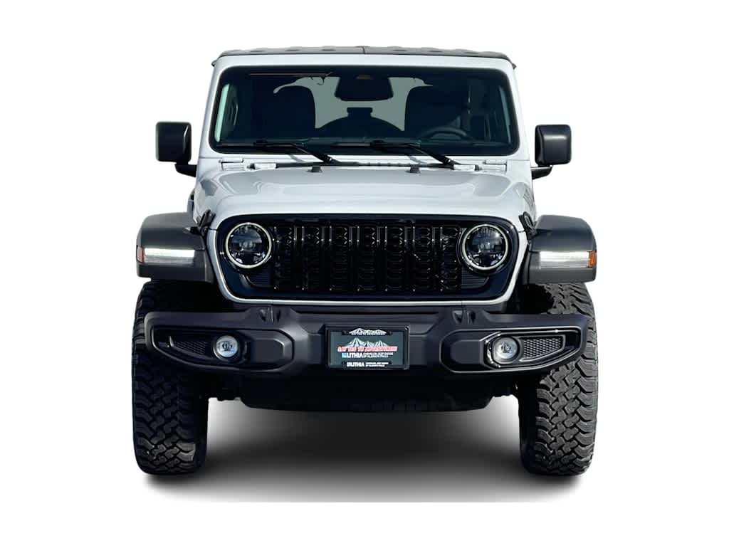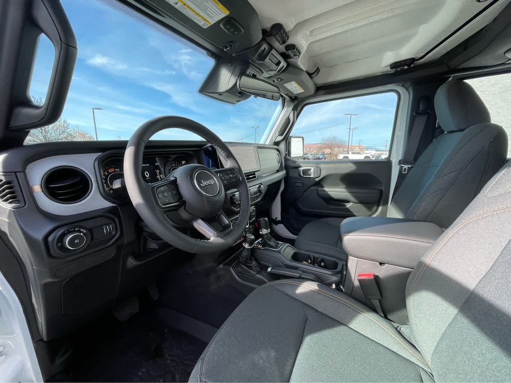 QUICK ORDER PACKAGE 22W WILLYS 2.0L I4 DOHC DI Turbo Engine w/ESS, 8-Speed Automatic 850RE Transmission, 7 & 4 Pin Wiring Harness, Conventional Differential Front Axle, 4-Wheel Drive Swing Gate Decal, Black Grille, Injection Molded Black Rear Bumper, Dana M210 Wide HD Tube Front Axle, Daytime Running Lamps LED Accents, Front LED Fog Lamps, LED Premium Reflector Headlamps, E-Locker Rear Axle, Corning Gorilla Glass, Security Alarm, Class II Receiver Hitch, Mold In Color Bumper w/Gloss Black, Advanced Brake Assist, Automatic Headlamps, Off-Road Plus Mode, Willys Hood Decal, Full Speed Forward Collision Warning Plus, Rock Protection Sill Rails, Power Heated Mirrors, Enhanced Adaptive Cruise Control, Auxiliary Switches, Dana M220 Wide Rear Axle, Molded in Color Rubicon Highline Flare, Premium, 8-SPEED AUTOMATIC 850RE TRANSMISSION Adaptive Cruise Control w/Stop, Anti-Lock 4-Wheel Disc Brakes, Integrated Radar Camera Module (IRCM), Dana M200 Rear Axle, Selec-Speed Control, BLACK 3-PIECE HARD TOP Freedom Panel Storage Bag, Rear Window Defroster, Rear Window Wiper/Washer, CONVENIENCE GROUP Emergency/Assistance Call, 2-Door Passive Entry, Front Door Locks, Cluster 7.0 TFT Color Display, Universal Garage Door Opener, Heated Front Seats, Air Conditioning w/Auto Temp Control, Heated Steering Wheel, Air Filtering, 2.0L I4 DOHC DI TURBO ENGINE W/ESS. Jeep Willys with Bright White Clearcoat exterior and Black interior features a 4 Cylinder Engine with 270 HP at 5250 RPM*.