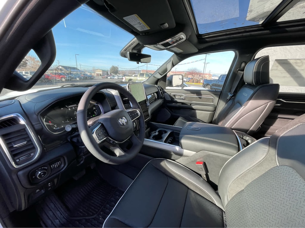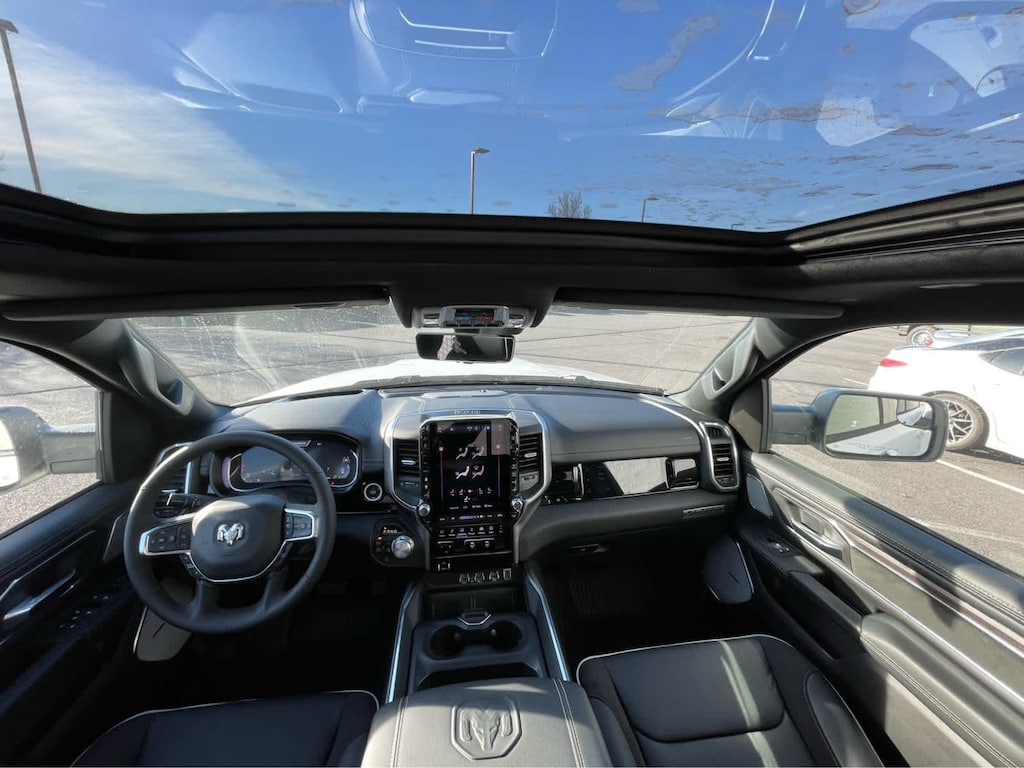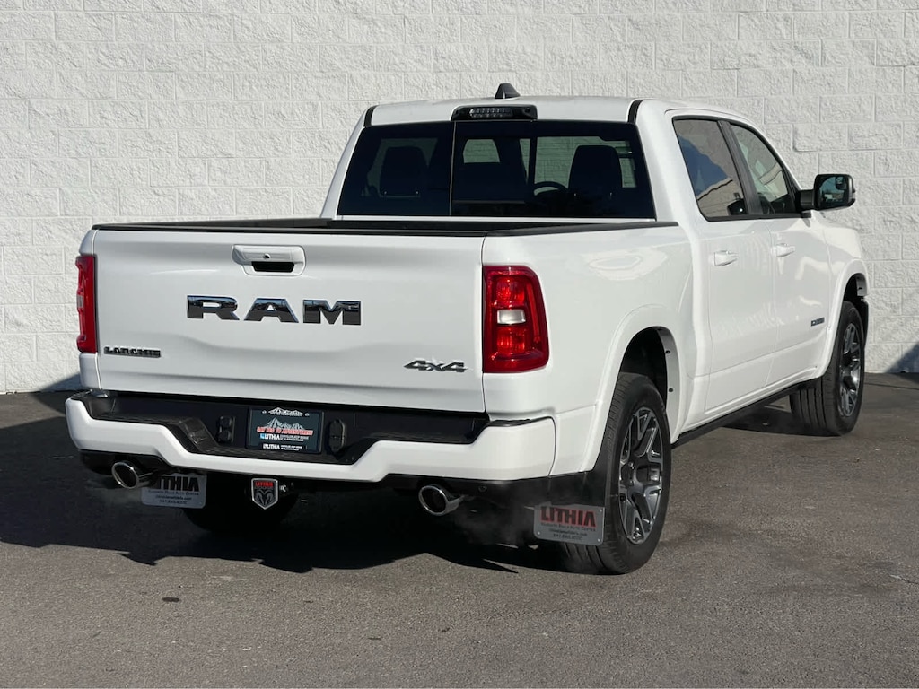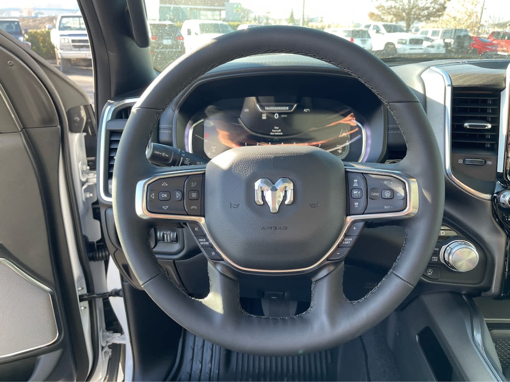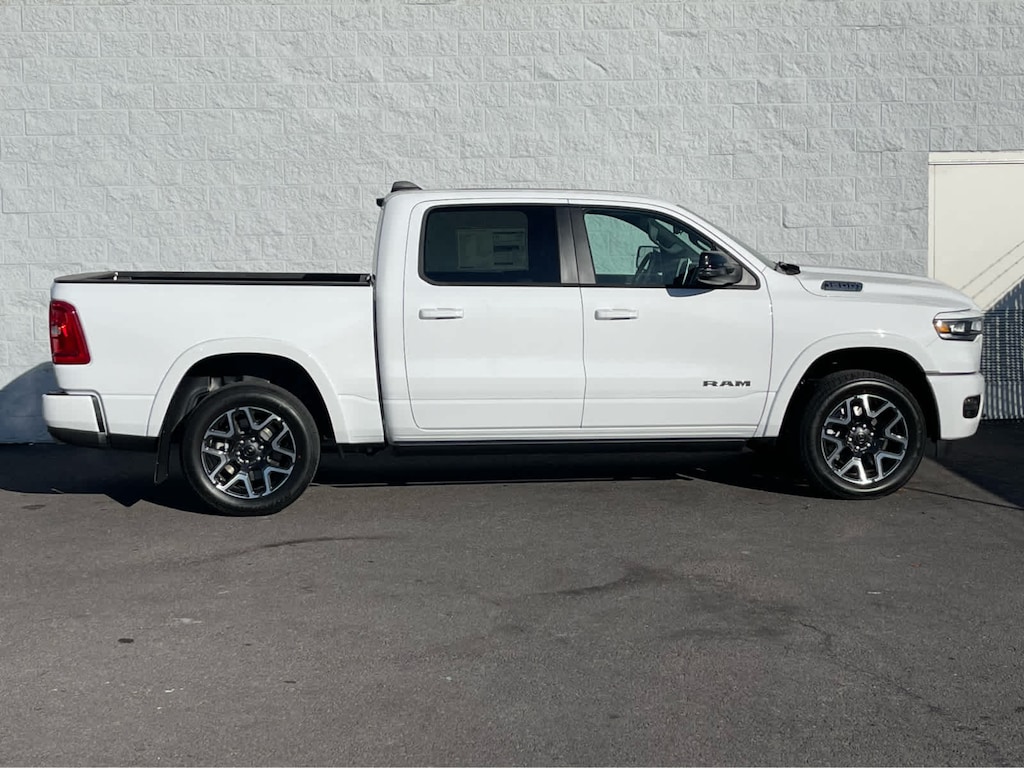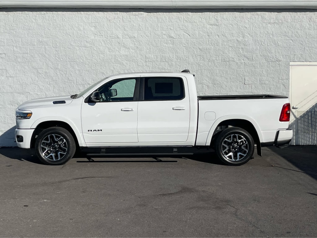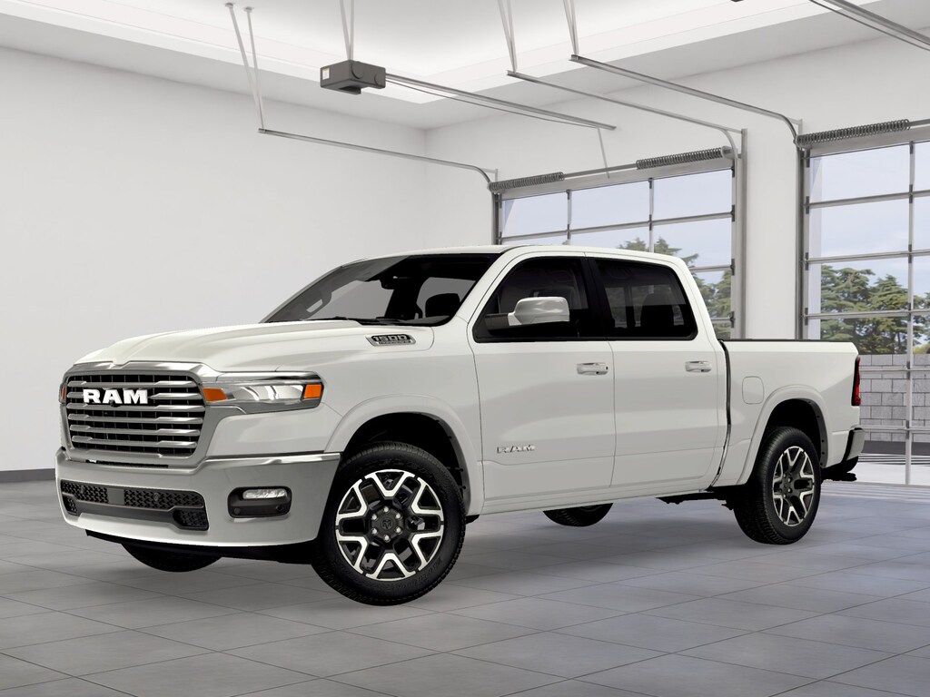 ADVANCED SAFETY GROUP II Exterior Mirrors Approach Lamps, Active Driving Assist System, Surround View Camera System, Evasive Steer Assist, Drowsy Driver Detection, Intersection Collision Assist System, Traffic Sign Recognition, 12-Way/1-Way Trailer Connector, LARAMIE LEVEL 2 EQUIPMENT GROUP Rain Sensitive Windshield Wipers, 14.4 Touchscreen Display, Front Passenger Interactive Display, Radio: Uconnect 5 Nav w/14.4 Display, harman/kardon® 19 Speaker Premium Sound, Cluster 12 TFT Color Display, Power Tailgate, LARAMIE PREFERRED PACKAGE Accent Color Premium Power Mirrors, Power Deployable Running Boards, Grille Surround 3 Body Color Tex 4 Chrome, Trailer Brake Control, Tow Hooks, Body Color Front Bumper, Dual-Pane Panoramic Sunroof, LED Dome/Reading Lamp, Dome Dual LED Reading Lamp, Body Color Rear Bumper w/Step Pads, Black Painted Exterior Mirrors Caps, TECHNOLOGY GROUP Head Up Display, LED CHMSL Lamp, 12-Way/1-Way Trailer Connector, BED UTILITY GROUP MOPAR Spray In Bedliner, MOPAR 4 Adjustable Cargo Tie-Down Hooks, Exterior 115V AC Outlet, ANTI-SPIN DIFFERENTIAL REAR AXLE, MOPAR FRONT & REAR RUBBER FLOOR MATS, TRANSMISSION: 8-SPEED AUTOMATIC (8HP75) (STD), ENGINE: 3.0L I6 HURRICANE SO TWIN TURBO ESS (STD). Ram Laramie with Bright White Clearcoat exterior and Black interior features a Straight 6 Cylinder Engine with 420 HP at 5200 RPM*.