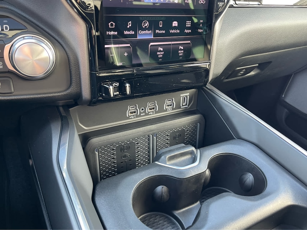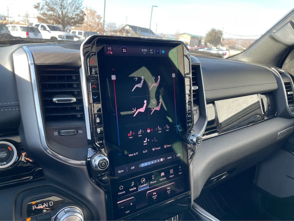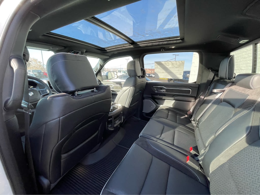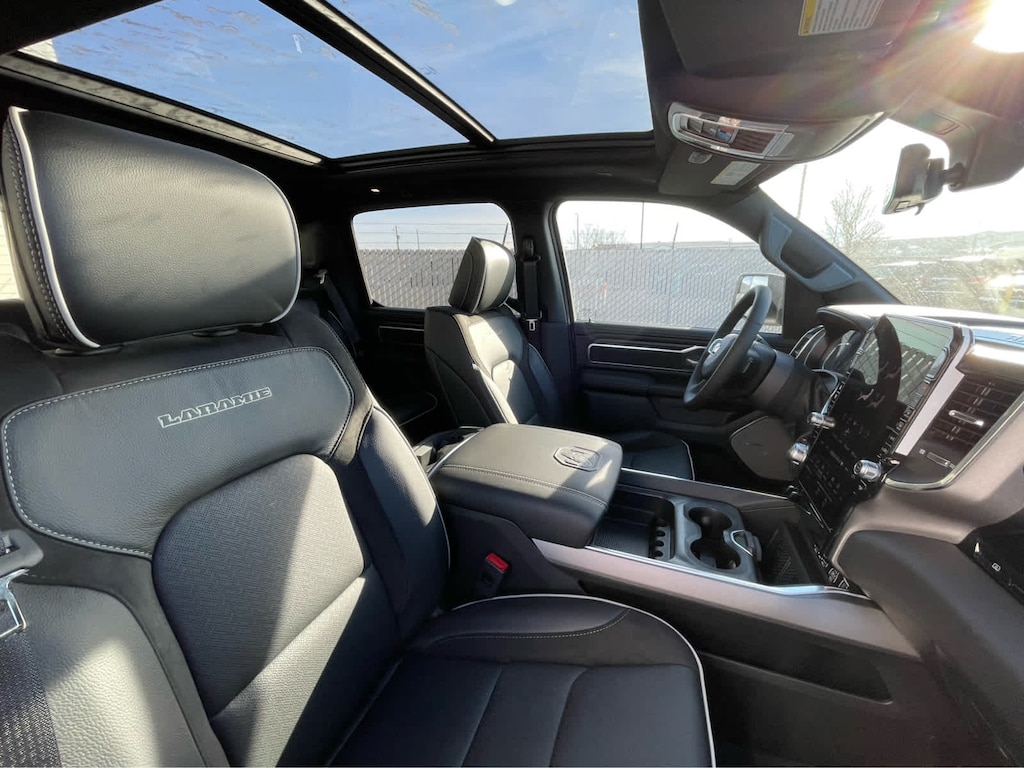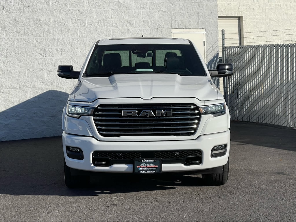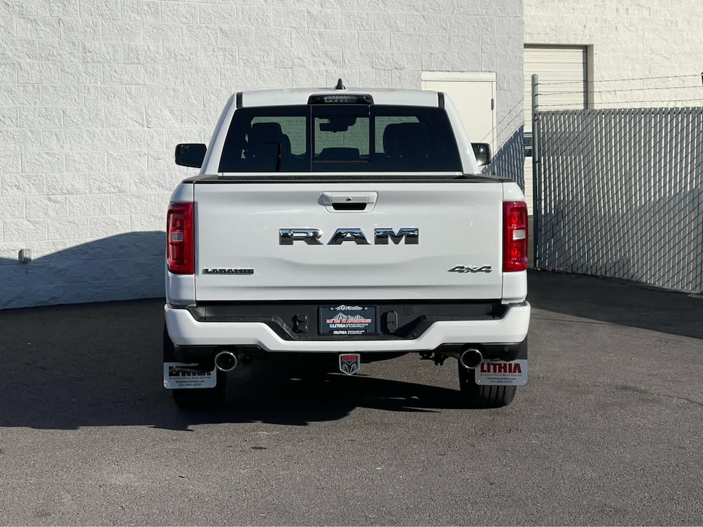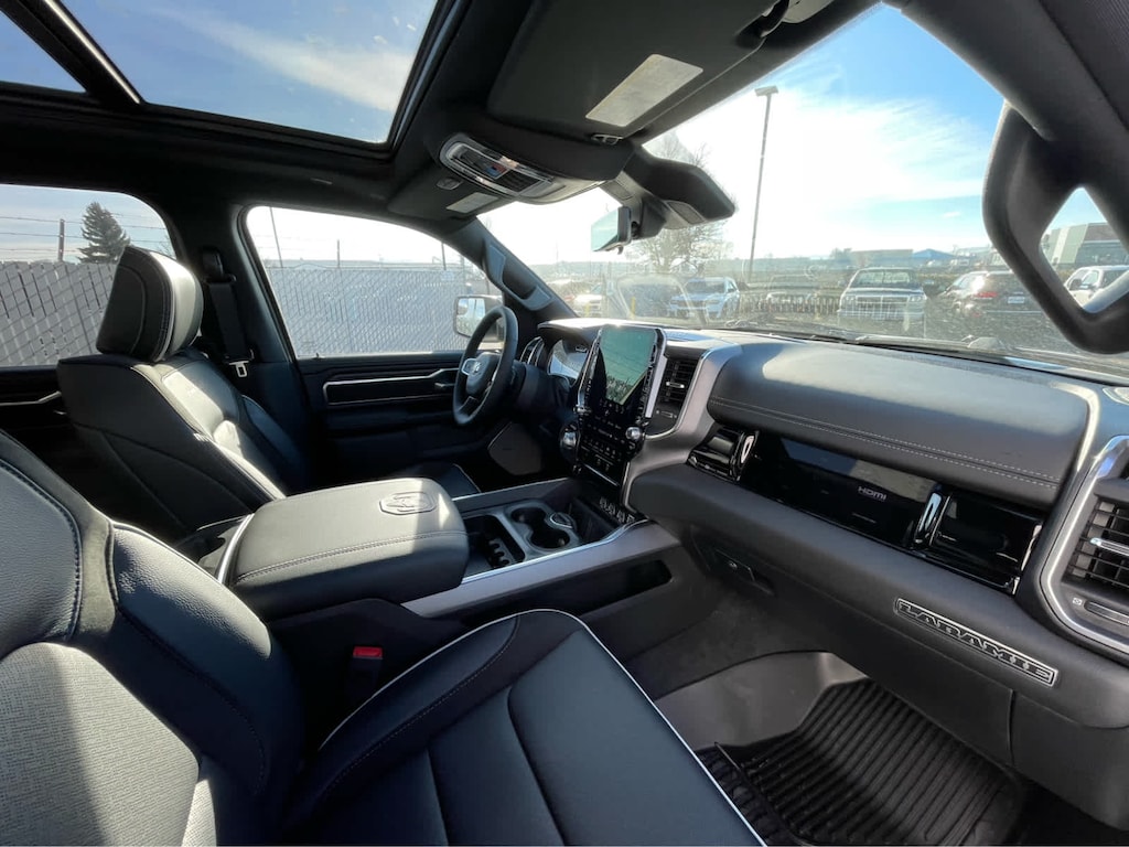 ADVANCED SAFETY GROUP II Exterior Mirrors Approach Lamps, Active Driving Assist System, Surround View Camera System, Evasive Steer Assist, Drowsy Driver Detection, Intersection Collision Assist System, Traffic Sign Recognition, 12-Way/1-Way Trailer Connector, LARAMIE LEVEL 2 EQUIPMENT GROUP Rain Sensitive Windshield Wipers, 14.4 Touchscreen Display, Front Passenger Interactive Display, Radio: Uconnect 5 Nav w/14.4 Display, harman/kardon® 19 Speaker Premium Sound, Cluster 12 TFT Color Display, Power Tailgate, LARAMIE PREFERRED PACKAGE Accent Color Premium Power Mirrors, Power Deployable Running Boards, Grille Surround 3 Body Color Tex 4 Chrome, Trailer Brake Control, Tow Hooks, Body Color Front Bumper, Dual-Pane Panoramic Sunroof, LED Dome/Reading Lamp, Dome Dual LED Reading Lamp, Body Color Rear Bumper w/Step Pads, Black Painted Exterior Mirrors Caps, TECHNOLOGY GROUP Head Up Display, LED CHMSL Lamp, 12-Way/1-Way Trailer Connector, BED UTILITY GROUP MOPAR Spray In Bedliner, MOPAR 4 Adjustable Cargo Tie-Down Hooks, Exterior 115V AC Outlet, ANTI-SPIN DIFFERENTIAL REAR AXLE, MOPAR FRONT & REAR RUBBER FLOOR MATS, TRANSMISSION: 8-SPEED AUTOMATIC (8HP75) (STD), ENGINE: 3.0L I6 HURRICANE SO TWIN TURBO ESS (STD). Ram Laramie with Bright White Clearcoat exterior and Black interior features a Straight 6 Cylinder Engine with 420 HP at 5200 RPM*.