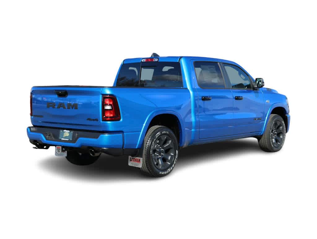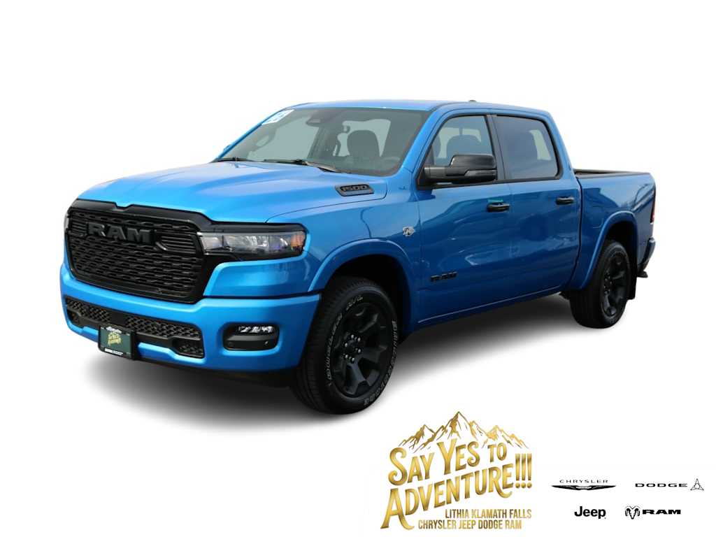 BIG HORN LEVEL 2 EQUIPMENT GROUP SiriusXM Radio Service, Power Adjustable Pedals, Leather Wrapped Steering Wheel, 12 Touchscreen Display, Glove Box Lamp, Auto Power-Folding Mirrors, 115V Auxiliary Rear Power Outlet, Media Hub w/2 Charge Only USBs, Heated Front Seats, Security Alarm, Black Premium Power Mirrors, Premium Overhead Console, 9 Amplified Speakers w/Subwoofer, Disassociated Touchscreen Display, Body Color Fender Flares, Remote Tailgate Release, 115V Auxiliary Power Outlet, LED Dome Lamp w/On/Off Switch, Universal Garage Door Opener, 2nd Row In Floor Storage Bins, Sun Visors w/Illuminated Vanity Mirrors, LED Footwell Lighting, Rear Window Defroster, Rear View Auto Dim Mirror, Rear Power Sliding Window, GPS Navigation, Overhead LED Lamps, Wheels: 20 x 9 Aluminum Chrome Clad, ENGINE: 5.7L V8 HEMI MDS VVT ETORQUE Active Noise Control System, Heavy Duty Engine Cooling, Passive Tuned Mass Damper, GVWR: 7,100 lbs, Dual Rear Exhaust w/Bright Tips, G/T Exhaust, 18 Aluminum Spare Wheel, NIGHT EDITION Tires: 275/55R20 OWL All Season, Bridgestone Brand Tires, Accent Color Premium Power Mirrors, Exterior Mirrors w/Supplemental Signals, Black Headlamp Bezels, Exterior Mirrors Courtesy Lamps, Grille Black Surround Black Mesh, Auto Power-Folding Mirrors, Wheels: 20 x 9.0 Aluminum Painted Clad, Auto Dim Exterior Driver Mirror, Black Exterior Truck Badging, Anti-Spin Differential Rear Axle, Accent Color Door Handles, Accent Color Tailgate Handle, Black Interior Accents, Dual Exhaust w/Black Tips, Body Color Front Bumper, Body Color Rear Bumper w/Step Pads, Black Tail Lamp Bezels, RAM Grille Badge - Black, Black Painted Exterior Mirrors Caps, BED UTILITY GROUP MOPAR Spray In Bedliner, MOPAR 4 Adjustable Cargo Tie-Down Hooks, Pick-Up Box Lighting, Exterior 115V AC Outlet, MOPAR FRONT & REAR RUBBER FLOOR MATS, TRANSMISSION: 8-SPEED AUTOMATIC (8HP75). Ram Big Horn with Hydro Blue Pearlcoat exterior and Black interior features a 8 Cylinder Engine with 395 HP at 5600 RPM*.