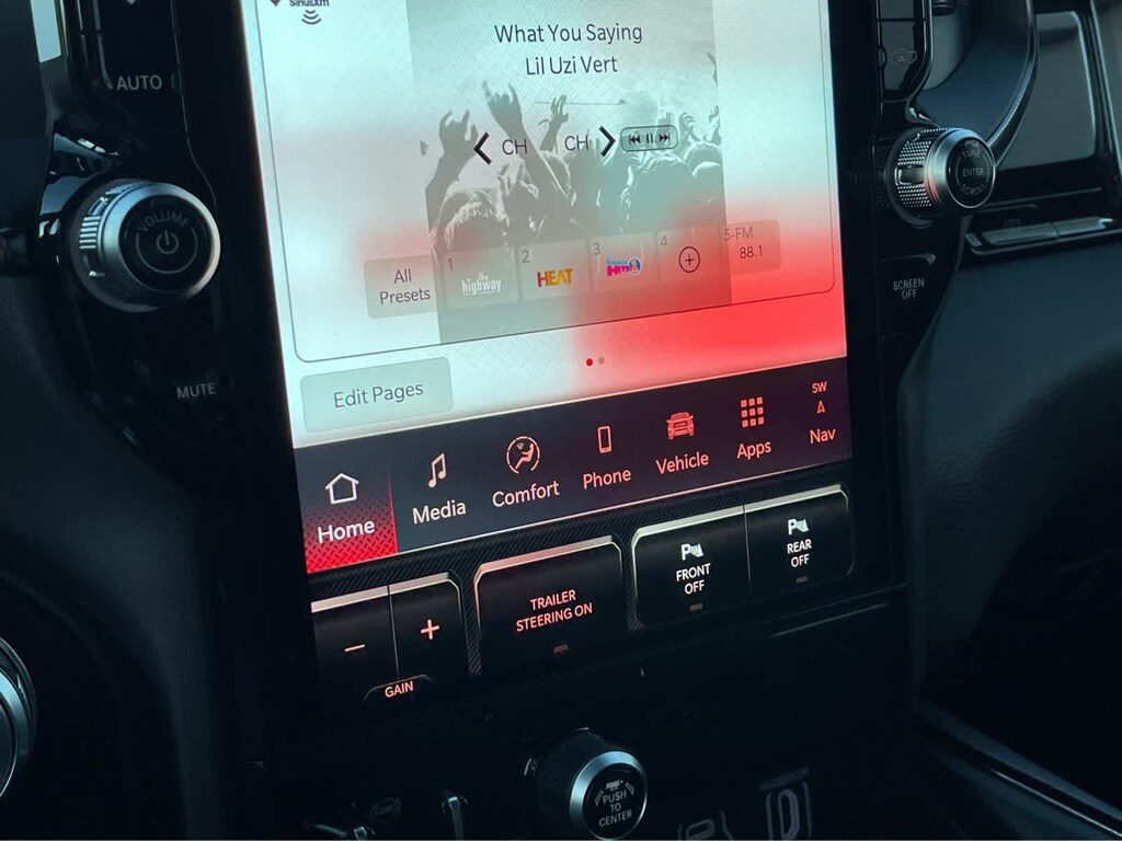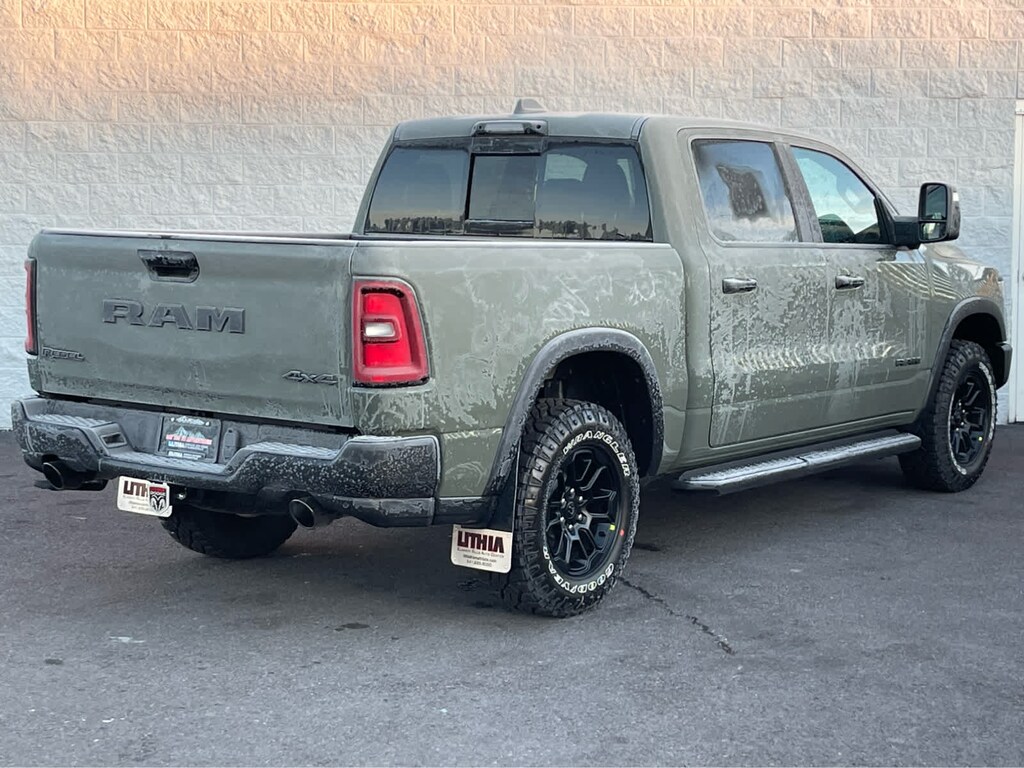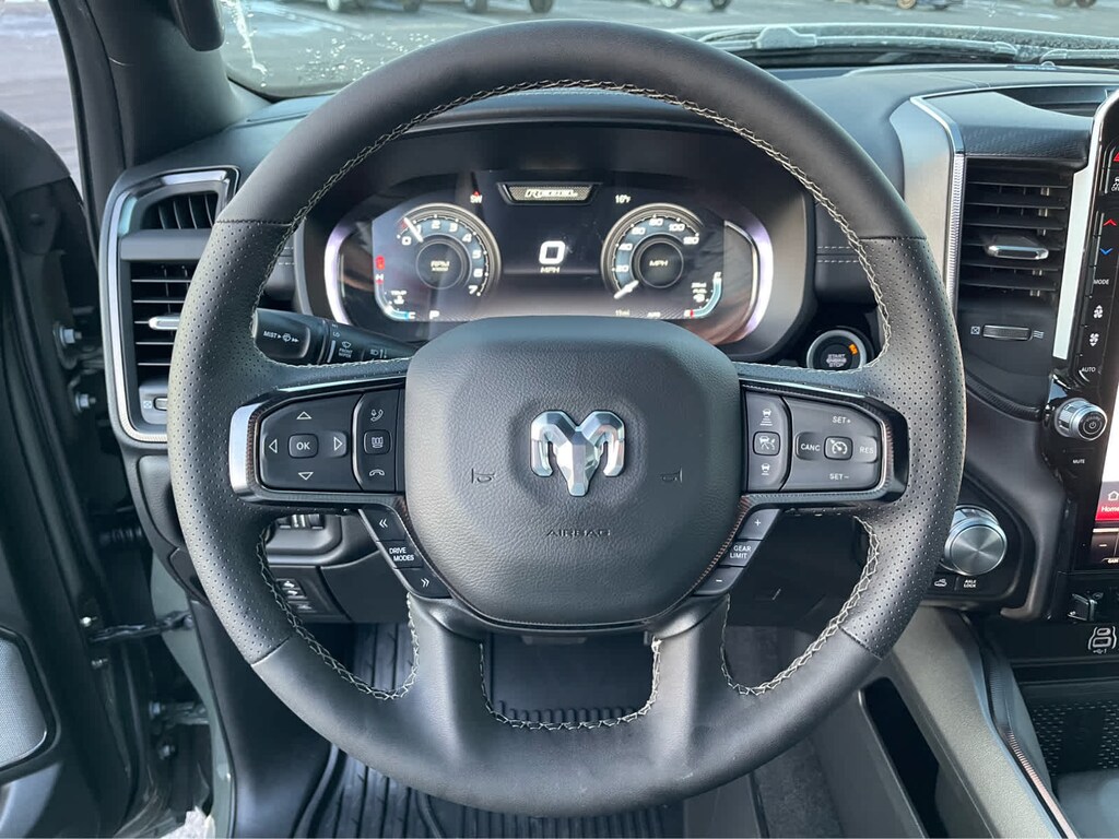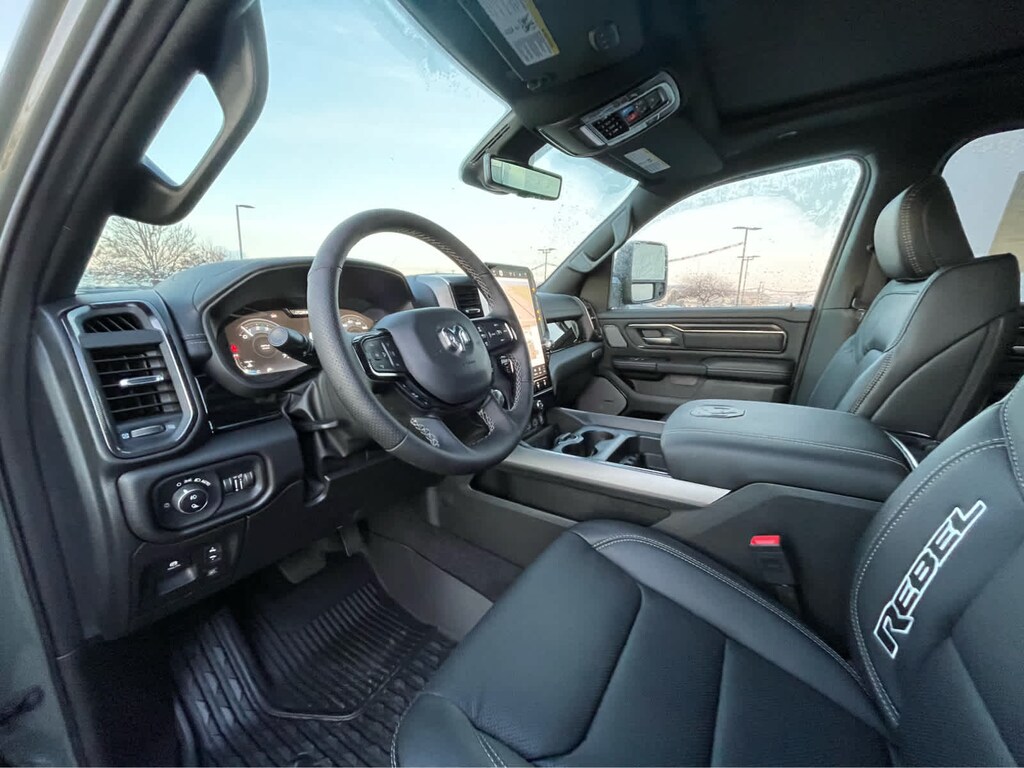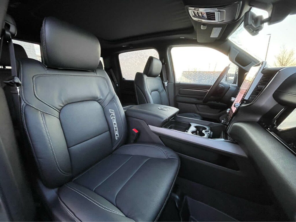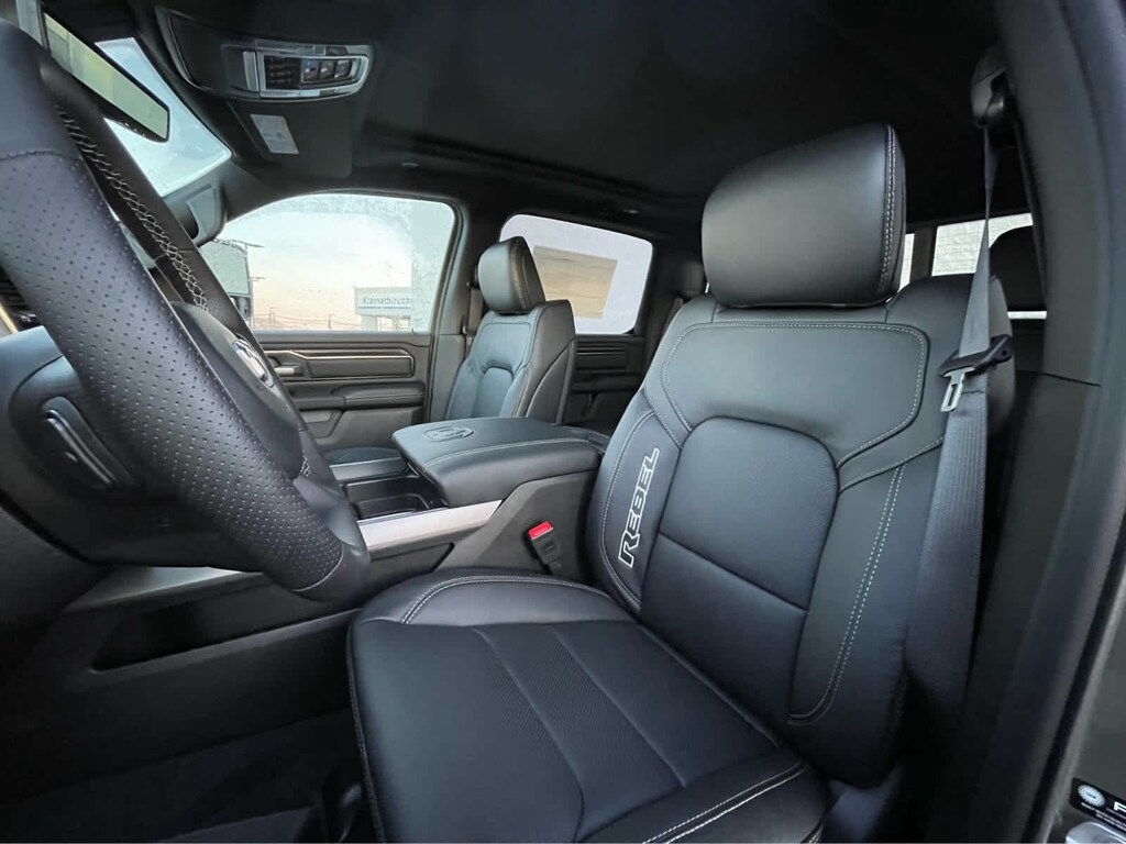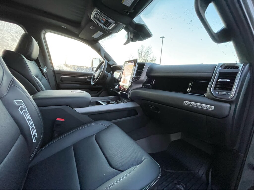 REBEL LEVEL 2 EQUIPMENT GROUP Power Adjustable Pedals w/Memory, Front Passenger Interactive Display, Power 2-Way Passenger Lumbar Adjust, Auto Power-Folding Mirrors, 115V Auxiliary Rear Power Outlet, Media Hub w/2 Charge Only USBs, Proximity Approach/Departure Lamps, Power Adjust 8-Way Front Passenger Seat, Security Alarm, Dual Wireless Charging Pad, harman/kardon® 19 Speaker Premium Sound, Rear Window Defroster, Rain Sensitive Windshield Wipers, Auto Dim Exterior Driver Mirror, Accent Color Door Handles, Heated Second Row Seats, Black Painted Exterior Mirrors Caps, Exterior Mirrors Approach Lamps, Smartphone As A Key Capable, 14.4 Touchscreen Display, Accent Color Premium Power Mirrors, Exterior Mirrors w/Supplemental Signals, Exterior Mirrors Courtesy Lamps, Radio: Uconnect 5 Nav w/14.4, DUAL-PANE PANORAMIC SUNROOF Dome Dual LED Reading Lamp, BLACK, LUX LEATHER TRIMMED BUCKET SEATS Power 2-Way Passenger Lumbar Adjust, Ventilated Front Seats, Power Adjust 8-Way Front Passenger Seat, TECHNOLOGY GROUP Head Up Display, LED CHMSL Lamp, 12-Way/1-Way Trailer Connector, MOPAR BLACK TUBULAR SIDE STEPS, BED UTILITY GROUP MOPAR Spray In Bedliner, MOPAR 4 Adjustable Cargo Tie-Down Hooks, Exterior 115V AC Outlet, TRANSMISSION: 8-SPEED AUTOMATIC (8HP75) (STD), ENGINE: 3.0L I6 HURRICANE SO TWIN TURBO ESS (STD). Ram Rebel with Canyon Lake exterior and Black interior features a Straight 6 Cylinder Engine with 420 HP at 5200 RPM*.