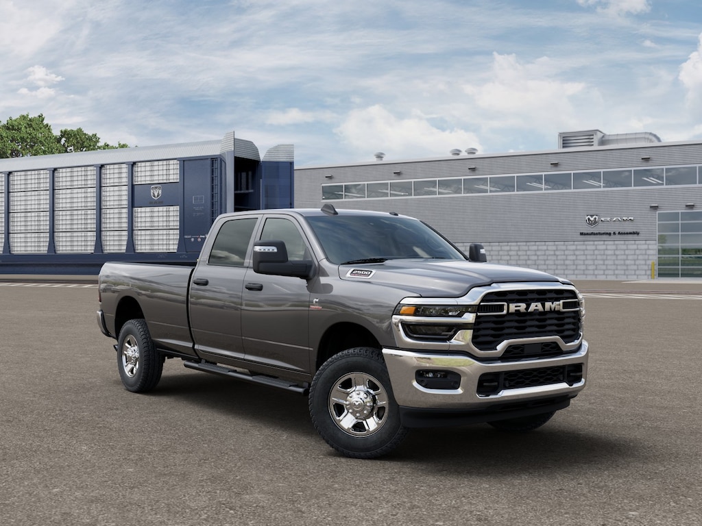 ENGINE: 6.7L I6 CUMMINS HO TURBO DIESEL Selective Catalytic Reduction (Urea), Dual 730 Amp Maintenance Free Batteries, Cummins Turbo Diesel Badge, Heavy Duty Engine Cooling, Diesel Exhaust Brake, Supplemental Heater, 3.42 Axle Ratio, Front Bumper Sight Shields, Capless Fuel Fill w/o Discriminator, GVWR: 11,040 lbs, TRADESMAN LEVEL 2 EQUIPMENT GROUP Convenience Group, Emergency Vehicle Alert System (EVAS), 12 Touchscreen Display, Anti-Spin Differential Rear Axle, Mirror Running Lights, Exterior 115V AC Outlet, Alexa Built-In, Power-Adjustable Convex Aux Mirrors, Disassociated Touchscreen Display, Matte Black Mesh Grille w/Chrome, 115V Auxiliary Front Power Outlet, Center Hub, Tires: LT275/70R18E BSW AS, Rear View Auto Dim Mirror, Rear Power Sliding Window, Tinted Acoustic Windshield Glass, GPS Navigation, Bright Rear Bumper, Exterior Mirrors w/Heating Element, Chrome Grille Surround, MOPAR Black Tubular Side Steps, SiriusXM w/360L, Connected Travel & Traffic Services, Wheels: 18 x 8.0 Steel Chrome Clad, Carpet Floor Covering, Off-Road Info Pages, Trailer Tow Pages, 400W Inverter, HD Radio, Power, BED CONVENIENCE GROUP MOPAR Spray In Bedliner, LED Bed Lighting, TRANSMISSION: 8-SPEED TORQUEFLITE HD AUTOMATIC, BLACK, CLOTH 40/20/40 BENCH SEAT. Ram Tradesman with Granite Crystal Metallic Clearcoat exterior and Black interior features a Straight 6 Cylinder Engine with 430 HP at 2800 RPM*.