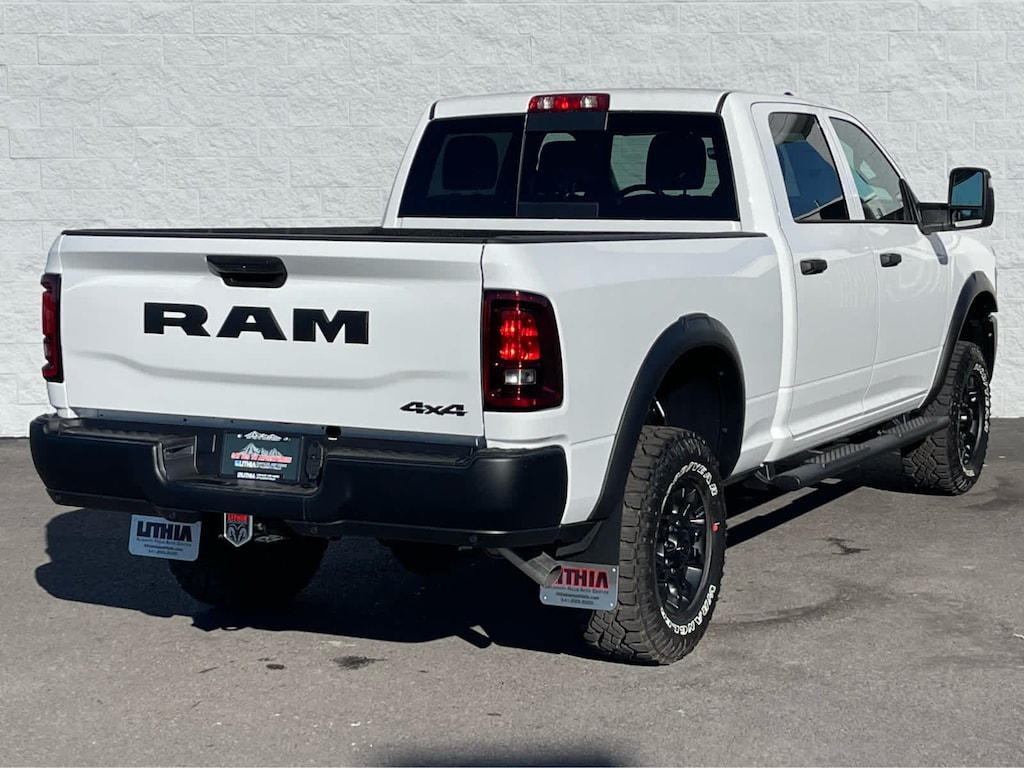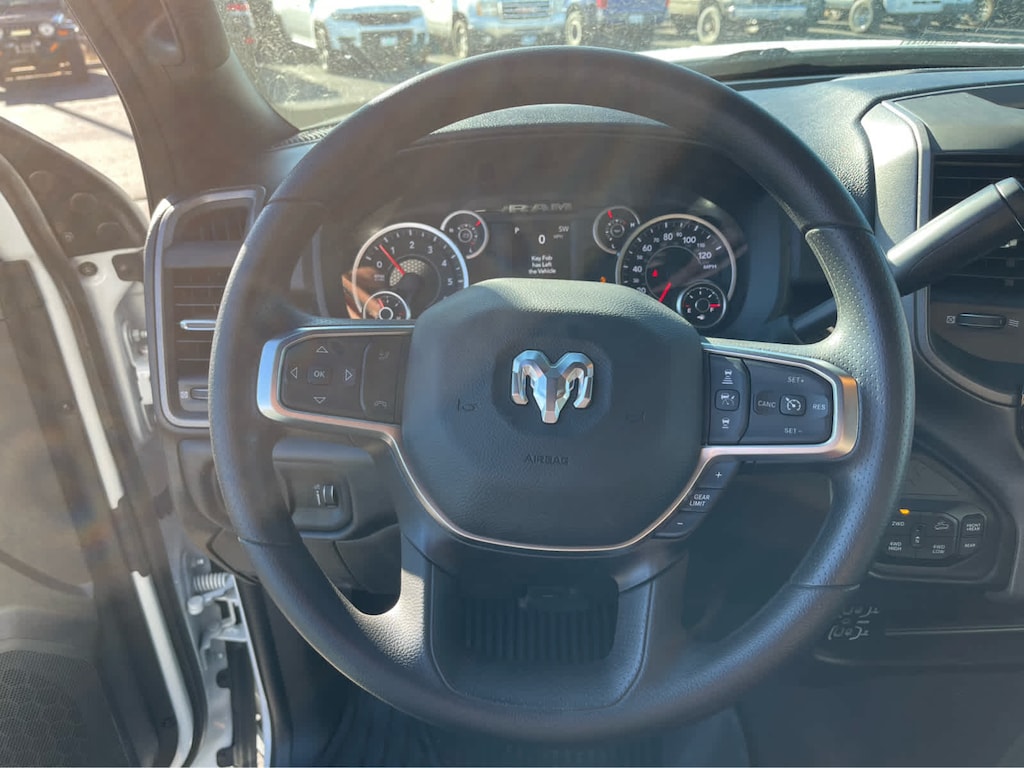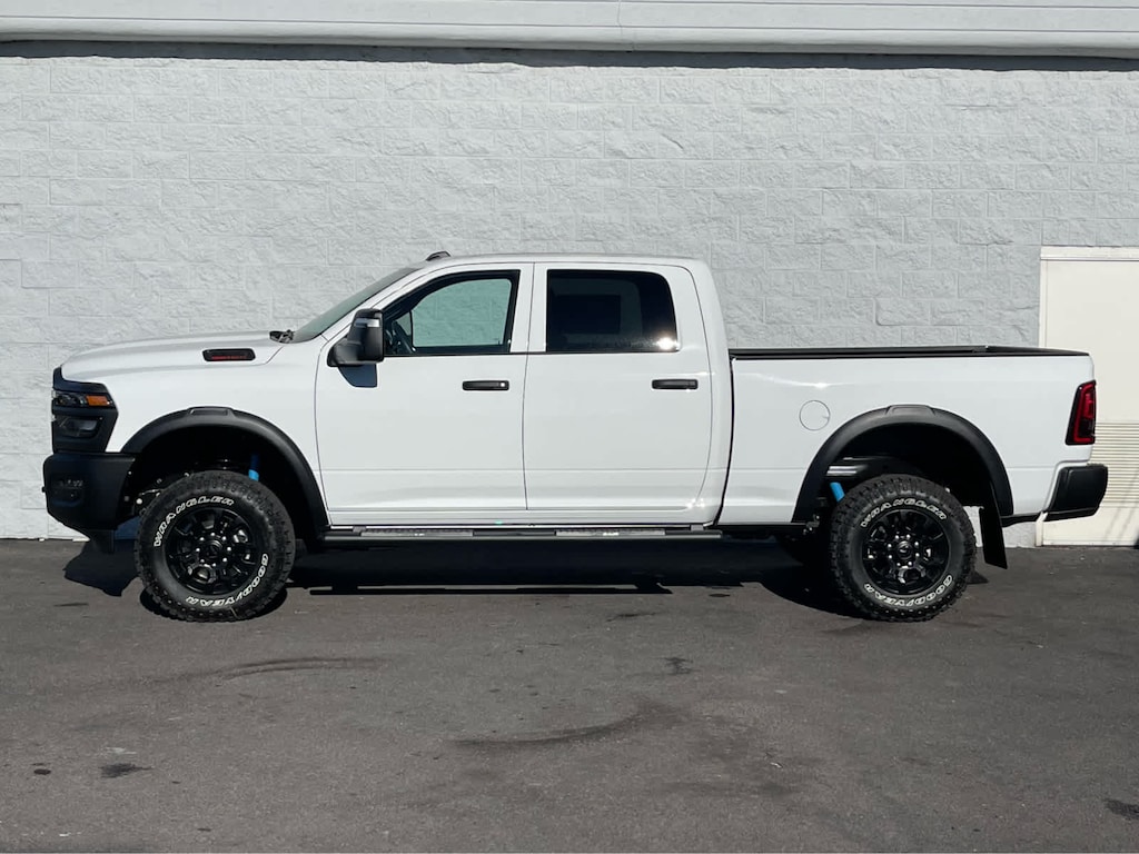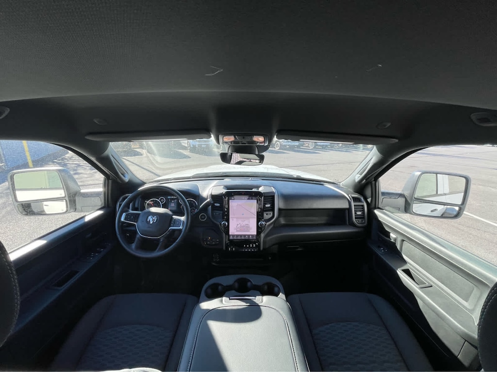 POWER WAGON PACKAGE Powder Coated Rear Bumper, RAM Articulink Suspension, Wheels: 17 x 8.0 Black Painted Aluminum, Front Electric Winch, Raised Ride Height, Tires: LT285/70R17D OWL AT, Rear Performance Tuned Shock Absorbers, Front Performance Tuned Shock Absorbers, GVWR: 8,565 lbs, Front Disconnecting Stabilizer Bar, Tru-Lok Front & Rear Axles, Base Engine Controller, Transfer Case Skid Plate Shield, Fuel Tank Skid Plate Shield, Goodyear Brand Tires, Black Wheel Flares, 4.10 Axle Ratio, Powder Coated Front Bumper, Hill Assist, ParkSense Front/Rear Park Assist System, Rear Wheelhouse Liners, TRADESMAN LEVEL 1 EQUIPMENT GROUP Convenience Group, Emergency Vehicle Alert System (EVAS), 12 Touchscreen Display, Auto Power-Folding Mirrors, Anti-Spin Differential Rear Axle, Mirror Running Lights, Exterior 115V AC Outlet, Alexa Built-In, Power-Adjustable Convex Aux Mirrors, Forward & Reverse Utility Lights, Disassociated Touchscreen Display, 115V Auxiliary Front Power Outlet, Rear View Auto Dim Mirror, Rear Power Sliding Window, Tinted Acoustic Windshield Glass, GPS Navigation, Exterior Mirrors w/Heating Element, MOPAR Black Tubular Side Steps, SiriusXM w/360L, Connected Travel & Traffic Services, Carpet Floor Covering, Off-Road Info Pages, Trailer Tow Pages, 400W Inverter, HD Radio, Power Heated Folding Telescope Mirrors, Radio: Uconnect 5 Nav w/12.0 Display, Exterior Mirrors, BED UTILITY GROUP MOPAR Spray In Bedliner, LED Bed Lighting, MOPAR Deployable Bed Step, TRANSMISSION: 8-SPEED AUTO (8HP75-LCV) (STD), ENGINE: 6.4L V8 HEMI HD (STD), BLACK, CLOTH 40/20/40 BENCH SEAT. Ram Tradesman with Bright White Clearcoat exterior and Black interior features a 8 Cylinder Engine with 405 HP at 5600 RPM*.