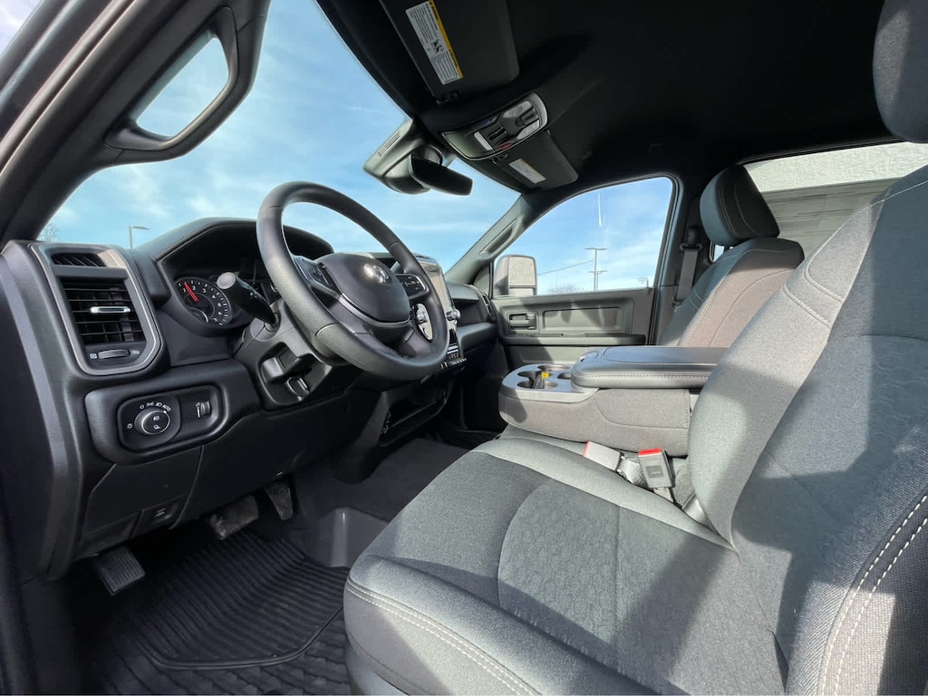 POWER WAGON PACKAGE Powder Coated Rear Bumper, RAM Articulink Suspension, Wheels: 17 x 8.0 Black Painted Aluminum, Front Electric Winch, Raised Ride Height, Tires: LT285/70R17D OWL AT, Rear Performance Tuned Shock Absorbers, Front Performance Tuned Shock Absorbers, GVWR: 8,565 lbs, Front Disconnecting Stabilizer Bar, Tru-Lok Front & Rear Axles, Base Engine Controller, Transfer Case Skid Plate Shield, Fuel Tank Skid Plate Shield, Goodyear Brand Tires, Black Wheel Flares, 4.10 Axle Ratio, Powder Coated Front Bumper, Hill Assist, ParkSense Front/Rear Park Assist System, Rear Wheelhouse Liners, TRADESMAN LEVEL 1 EQUIPMENT GROUP Convenience Group, Emergency Vehicle Alert System (EVAS), 12 Touchscreen Display, Auto Power-Folding Mirrors, Anti-Spin Differential Rear Axle, Mirror Running Lights, Exterior 115V AC Outlet, Alexa Built-In, Power-Adjustable Convex Aux Mirrors, Forward & Reverse Utility Lights, Disassociated Touchscreen Display, 115V Auxiliary Front Power Outlet, Rear View Auto Dim Mirror, Rear Power Sliding Window, Tinted Acoustic Windshield Glass, GPS Navigation, Exterior Mirrors w/Heating Element, MOPAR Black Tubular Side Steps, SiriusXM w/360L, Connected Travel & Traffic Services, Carpet Floor Covering, Off-Road Info Pages, Trailer Tow Pages, 400W Inverter, HD Radio, Power Heated Folding Telescope Mirrors, Radio: Uconnect 5 Nav w/12.0 Display, Exterior Mirrors, BED UTILITY GROUP MOPAR Spray In Bedliner, LED Bed Lighting, MOPAR Deployable Bed Step, TRANSMISSION: 8-SPEED AUTO (8HP75-LCV) (STD), ENGINE: 6.4L V8 HEMI HD (STD), BLACK, CLOTH 40/20/40 BENCH SEAT. Ram Tradesman with Forged Blue Metallic exterior and Black interior features a 8 Cylinder Engine with 405 HP at 5600 RPM*.