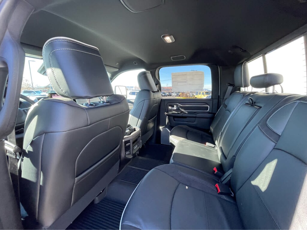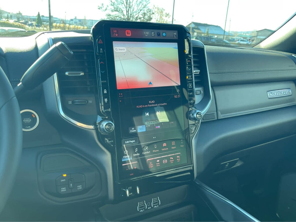 ENGINE: 6.7L I6 CUMMINS HO TURBO DIESEL Selective Catalytic Reduction (Urea), Dual 730 Amp Maintenance Free Batteries, Cummins Turbo Diesel Badge, Heavy Duty Engine Cooling, Diesel Exhaust Brake, Supplemental Heater, 3.42 Axle Ratio, Front Bumper Sight Shields, Capless Fuel Fill w/o Discriminator, GVWR: 11,040 lbs, LARAMIE LEVEL 2 PLUS EQUIPMENT GROUP Power Adjustable Pedals w/Memory, Power Deployable Running Boards, Anti-Spin Differential Rear Axle, Drowsy Driver Detection, MOPAR Deployable Bed Step, Active Lane Management System, Remote Tailgate Release, 17 Speaker harman/kardon® Premium Sound, 2nd Row In Floor Storage Bins, CTR Stop Lamp w/Cargo View Camera, Rain Sensitive Windshield Wipers, LED Bed Lighting, Traffic Sign Recognition, Adaptive Steering System, Auto Dim Exterior Mirror, Foam Bottle Insert (Door Trim Panel), 14.4 Touchscreen Display, Power Heated Fold Telescopic Mirrors w/Memory, Radio: Uconnect 5 Nav w/14.4 Display, MOPAR Spray In Bedliner, Auto High Beam Headlamp Control, Exterior Mirrors w/Memory, Auto Dim Exterior Passenger Mirror, Auto Adjust In Reverse Exterior Mirrors, AUTO LEVEL REAR AIR SUSPENSION, TOWING TECHNOLOGY GROUP Surround View Camera System, Trailer Tire Pressure Monitoring System, Trailer Reverse Guidance, MOPAR FRONT & REAR RUBBER FLOOR MATS, TRANSMISSION: 8-SPEED TORQUEFLITE HD AUTOMATIC, BLACK, LEATHER TRIMMED BUCKET SEATS Bucket Seats, Dual Wireless Charging Pad, Ventilated Front Seats, Radio/Driver Seat/Mirrors/Pedals Memory, Full Length Upgraded Floor Console. Ram Laramie with Bright White Clearcoat exterior and Black interior features a Straight 6 Cylinder Engine with 430 HP at 2800 RPM*.