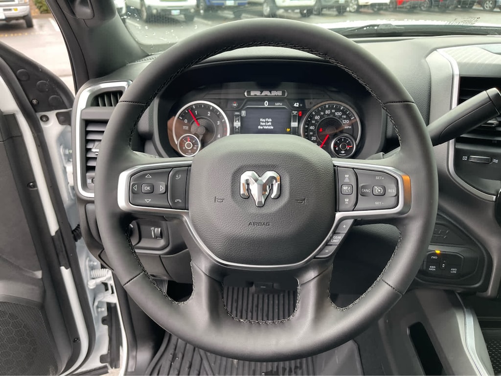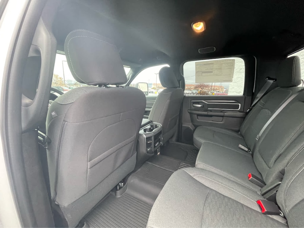 ENGINE: 6.7L I6 CUMMINS HO TURBO DIESEL Selective Catalytic Reduction (Urea), Dual 730 Amp Maintenance Free Batteries, Cummins Turbo Diesel Badge, Heavy Duty Engine Cooling, Diesel Exhaust Brake, Supplemental Heater, 3.42 Axle Ratio, Front Bumper Sight Shields, Capless Fuel Fill w/o Discriminator, GVWR: 11,040 lbs, BIG HORN LEVEL 2 PLUS EQUIPMENT GROUP Surround View Camera System, Blind Spot & Cross Path Detection, LED Tail Lamps, Red Tail Lamp Bezels, Power Adjustable Pedals, Emergency Vehicle Alert System (EVAS), 12 Touchscreen Display, Glove Box Lamp, Auto Power-Folding Mirrors, Footwell Courtesy Lamp, 115V Auxiliary Rear Power Outlet, Media Hub w/2 Charge Only USBs, Anti-Spin Differential Rear Axle, Drowsy Driver Detection, Heated Front Seats, MOPAR Deployable Bed Step, Exterior 115V AC Outlet, Alexa Built-In, Active Lane Management System, Forward & Reverse Utility Lights, Locking Lower Glove Box, Remote Start System, 9 Alpine Speakers w/Subwoofer, Disassociated Touchscreen Display, Dual Wireless Charging Pad, Trailer Tire Pressure Monitoring System, Dual Glove Boxes, 115V Auxiliary Front Power, WHEELS: 20 X 8.0 POLISHED ALUMINUM Tires: LT285/60R20E OWL On/Off Road, CHROME FLAT WHEEL-TO-WHEEL SIDE STEPS, MOPAR FRONT & REAR RUBBER FLOOR MATS, TRANSMISSION: 8-SPEED TORQUEFLITE HD AUTOMATIC, BLACK, PREMIUM CLOTH BUCKET SEATS Bucket Seats, Power Adjust 8-Way Driver Seat, Folding Flat Load Floor Storage, Rear 60/40 Folding Seat, Front Seat Back Map Pockets, Power 2-Way Driver Lumbar Adjust, Full Length Upgraded Floor Console. Ram Big Horn with Bright White Clearcoat exterior and Black interior features a Straight 6 Cylinder Engine with 430 HP at 2800 RPM*.