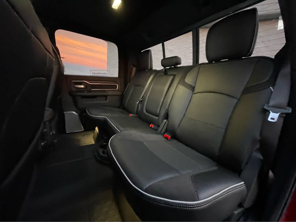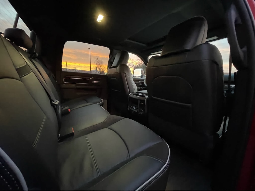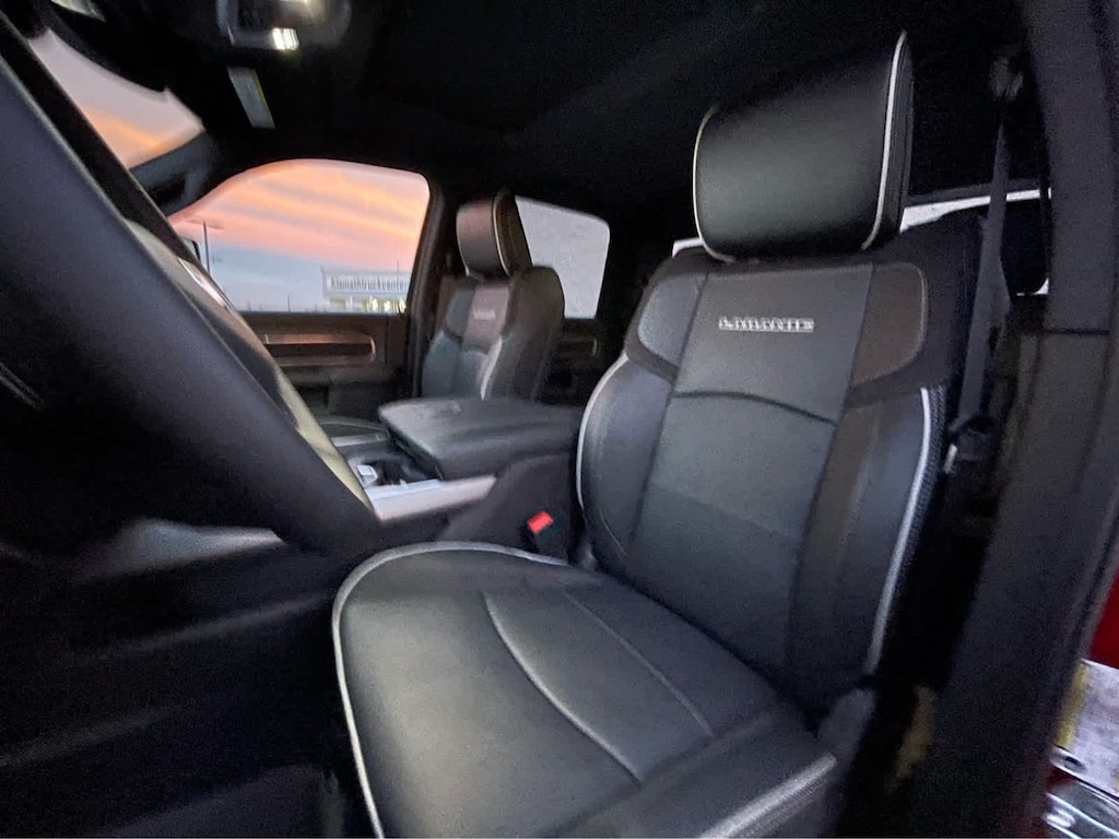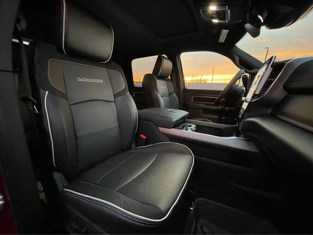 ENGINE: 6.7L I6 CUMMINS HO TURBO DIESEL Selective Catalytic Reduction (Urea), Dual 730 Amp Maintenance Free Batteries, Cummins Turbo Diesel Badge, Heavy Duty Engine Cooling, Current Generation Engine Controller, Diesel Exhaust Brake, Supplemental Heater, 3.42 Axle Ratio, Front Bumper Sight Shields, Capless Fuel Fill w/o Discriminator, LARAMIE LEVEL 2 PLUS EQUIPMENT GROUP Power Adjustable Pedals w/Memory, For Details Visit DriveUconnect.com, For More Info, Call 800-643-2112, Power Deployable Running Boards, Drowsy Driver Detection, MOPAR Deployable Bed Step, Active Lane Management System, Remote Tailgate Release, 17 Speaker harman/kardon® Premium Sound, 2nd Row In Floor Storage Bins, CTR Stop Lamp w/Cargo View Camera, Rain Sensitive Windshield Wipers, LED Bed Lighting, Traffic Sign Recognition, Adaptive Steering System, Auto Dimming Exterior Mirrors, Foam Bottle Insert (Door Trim Panel), 14.4 Touchscreen Display, Power Heat Fold Memory Telescopic Mirrors, Radio: Uconnect 5 Nav w/14.4 Display, MOPAR Spray In Bedliner, Auto High Beam Headlamp Control, Exterior Mirrors w/Memory, Auto Dimming Exterior Passenger Mirror, Auto, TOWING TECHNOLOGY GROUP CTR Stop Lamp w/Cargo View Camera, Surround View Camera System, Trailer Tire Pressure Monitoring System, Trailer Reverse Guidance, POWER SUNROOF, MOPAR FRONT & REAR RUBBER FLOOR MATS, TRANSMISSION: 8-SPEED TORQUEFLITE HD AUTOMATIC, BLACK, LEATHER TRIMMED BUCKET SEATS Bucket Seats, Dual Wireless Charging Pad, Full Length Upgraded Floor Console. Ram Laramie with Molten Red Pearlcoat exterior and Black interior features a Straight 6 Cylinder Engine with 430 HP at 2800 RPM*.