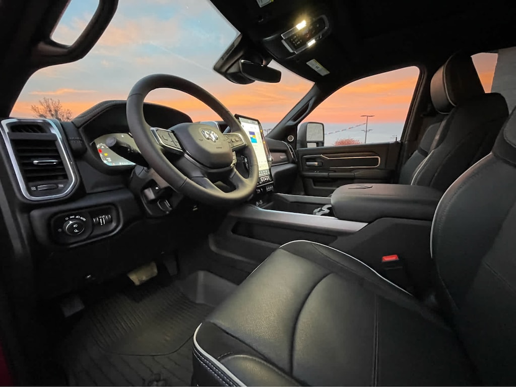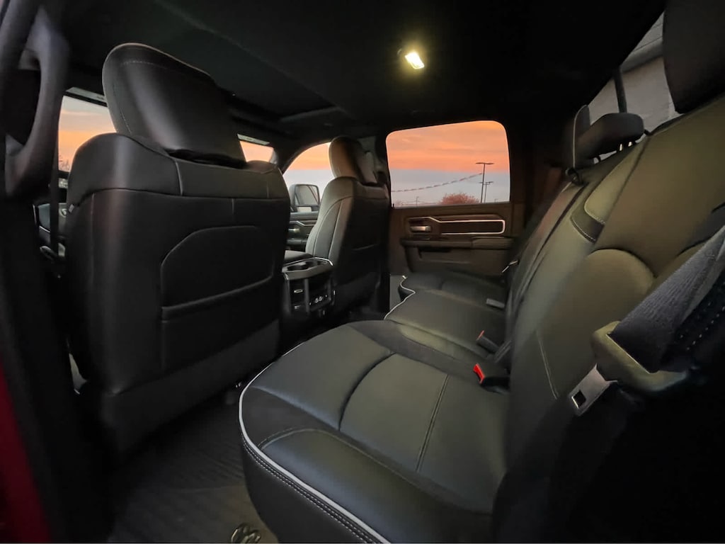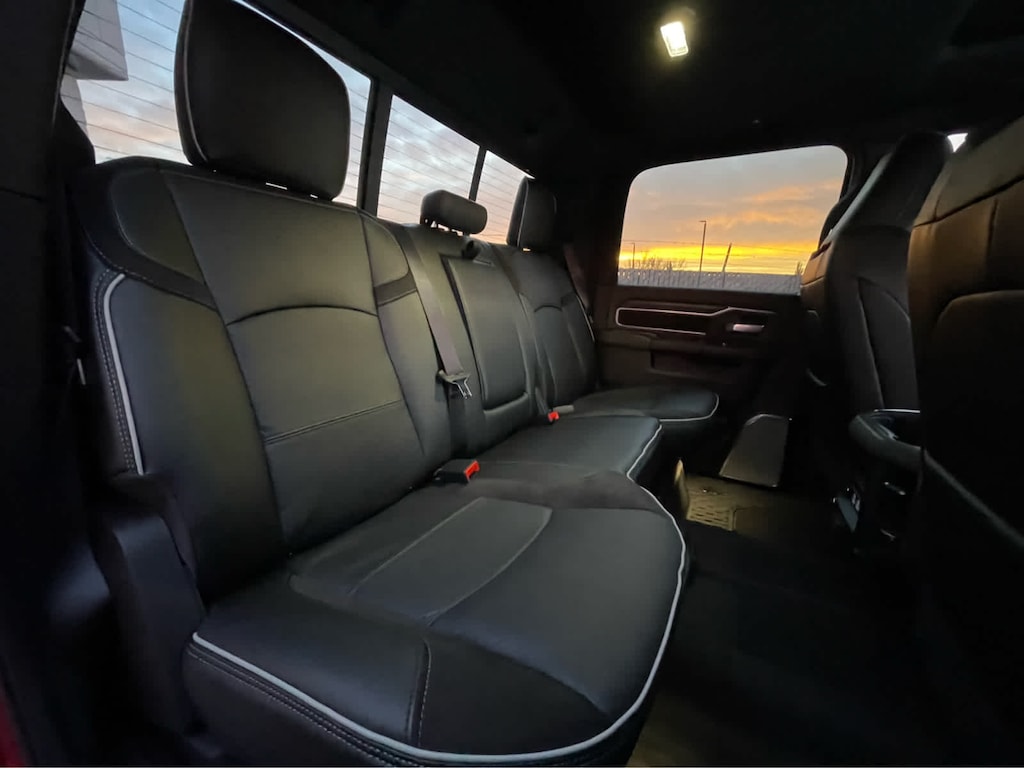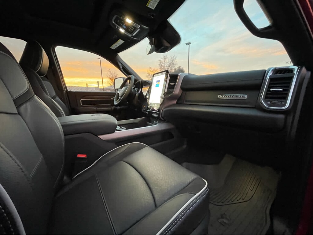 ENGINE: 6.7L I6 CUMMINS HO TURBO DIESEL Selective Catalytic Reduction (Urea), Dual 730 Amp Maintenance Free Batteries, Cummins Turbo Diesel Badge, Heavy Duty Engine Cooling, Current Generation Engine Controller, Diesel Exhaust Brake, Supplemental Heater, 3.42 Axle Ratio, Front Bumper Sight Shields, Capless Fuel Fill w/o Discriminator, LARAMIE LEVEL 2 PLUS EQUIPMENT GROUP Power Adjustable Pedals w/Memory, For Details Visit DriveUconnect.com, For More Info, Call 800-643-2112, Power Deployable Running Boards, Drowsy Driver Detection, MOPAR Deployable Bed Step, Active Lane Management System, Remote Tailgate Release, 17 Speaker harman/kardon® Premium Sound, 2nd Row In Floor Storage Bins, CTR Stop Lamp w/Cargo View Camera, Rain Sensitive Windshield Wipers, LED Bed Lighting, Traffic Sign Recognition, Adaptive Steering System, Auto Dimming Exterior Mirrors, Foam Bottle Insert (Door Trim Panel), 14.4 Touchscreen Display, Power Heat Fold Memory Telescopic Mirrors, Radio: Uconnect 5 Nav w/14.4 Display, MOPAR Spray In Bedliner, Auto High Beam Headlamp Control, Exterior Mirrors w/Memory, Auto Dimming Exterior Passenger Mirror, Auto, TOWING TECHNOLOGY GROUP CTR Stop Lamp w/Cargo View Camera, Surround View Camera System, Trailer Tire Pressure Monitoring System, Trailer Reverse Guidance, POWER SUNROOF, MOPAR FRONT & REAR RUBBER FLOOR MATS, TRANSMISSION: 8-SPEED TORQUEFLITE HD AUTOMATIC, BLACK, LEATHER TRIMMED BUCKET SEATS Bucket Seats, Dual Wireless Charging Pad, Full Length Upgraded Floor Console. Ram Laramie with Molten Red Pearlcoat exterior and Black interior features a Straight 6 Cylinder Engine with 430 HP at 2800 RPM*.