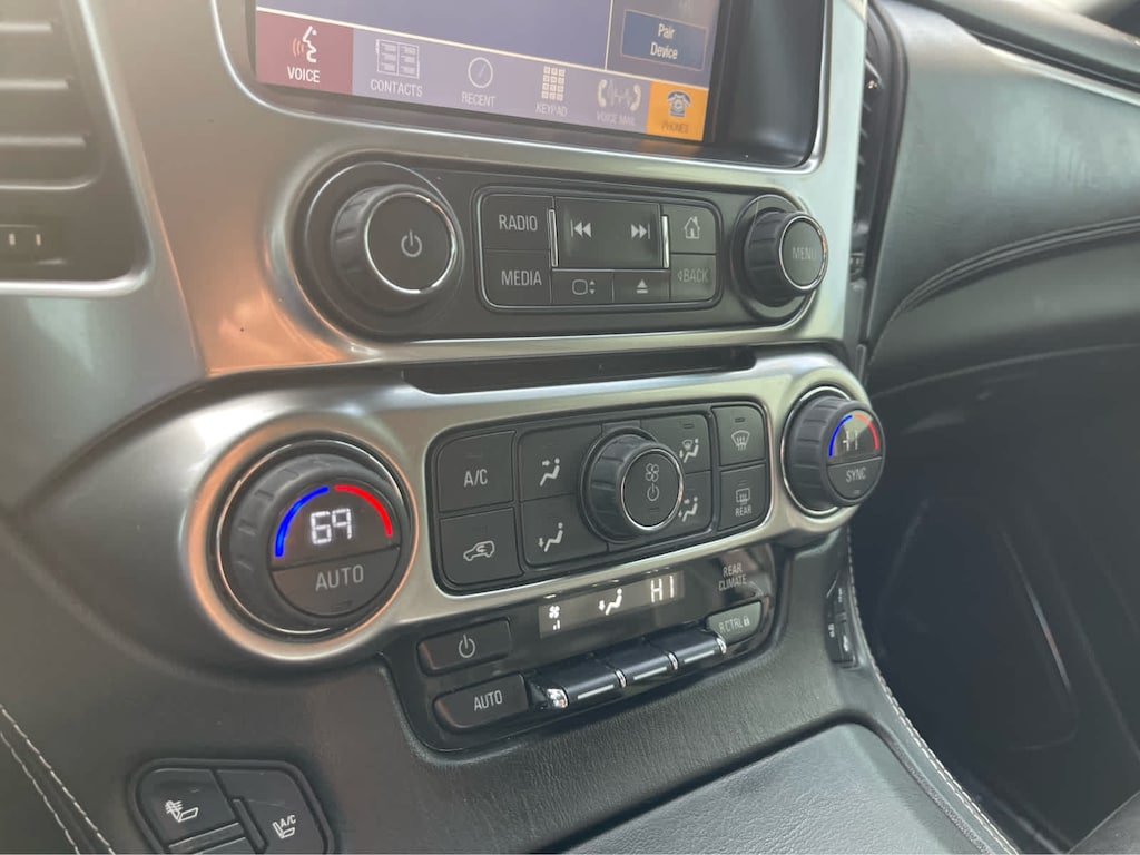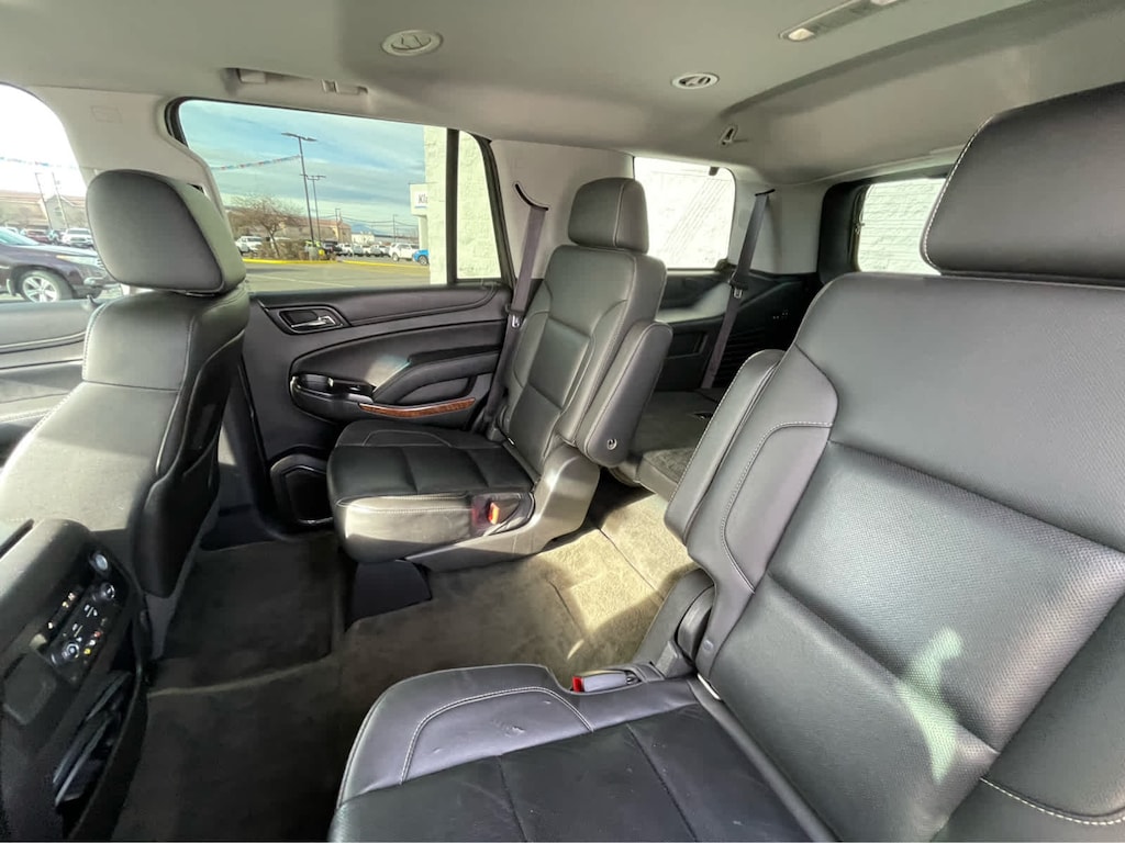 SUN, ENTERTAINMENT AND DESTINATIONS PACKAGE, (CF5) power sunroof, (U42) rear seat DVD entertainment system and (IO6) Chevrolet MyLink radio with navigation, ASSIST STEPS, POWER-RETRACTABLE with bright accent strip and perimeter lighting, ADAPTIVE CRUISE CONTROL with Front Automatic Braking, sophisticated radar transceiver automatically adjusts speed to maintain preset following distance, ENTERTAINMENT SYSTEM, REAR SEAT, BLU-RAY/DVD with remote control, overhead display, two 2-channel wireless infrared headphones and auxiliary audio/video input jacks/SD and USB slots, WHEELS, 22 (55.9 CM) PREMIUM PAINTED with chrome inserts, THEFT PROTECTION PACKAGE, BODY SECURITY CONTENT includes (UTR) self-powered horn, (UTV) interior movement and (UTU) vehicle inclination sensors, door lock shields and glass break sensors in rear quarter glass and liftgate window, removes sunglass holder and conversation mirror from overhead console, SEATING, FRONT BUCKET WITH PERFORATED LEATHER-APPOINTED HEATED AND COOLED SEAT CUSHIONS 12-way power driver and passenger seat includes 6-way power cushions, driver seat 2-position memory, 4-way power lumbar control and power recline (STD), AUDIO SYSTEM, CHEVROLET MYLINK RADIO WITH NAVIGATION, AM/FM STEREO AND CD PLAYER 5 USB ports, 1 SD card reader and an auxiliary jack (STD), ENGINE, 5.3L ECOTEC3 V8 WITH ACTIVE FUEL MANAGEMENT, DIRECT INJECTION AND VARIABLE VALVE TIMING includes aluminum block construction (355 hp [265 kW] @ 5600 rpm, 383 lb-ft of torque [518 N-m] @ 4100 rpm) (STD), TRANSMISSION, 6-SPEED AUTOMATIC, ELECTRONICALLY CONTROLLED with overdrive and tow/haul mode (STD). Chevrolet LTZ with TUNGSTEN METALLIC exterior and JET BLACK interior features a 8 Cylinder Engine with 355 HP at 5600 RPM*.