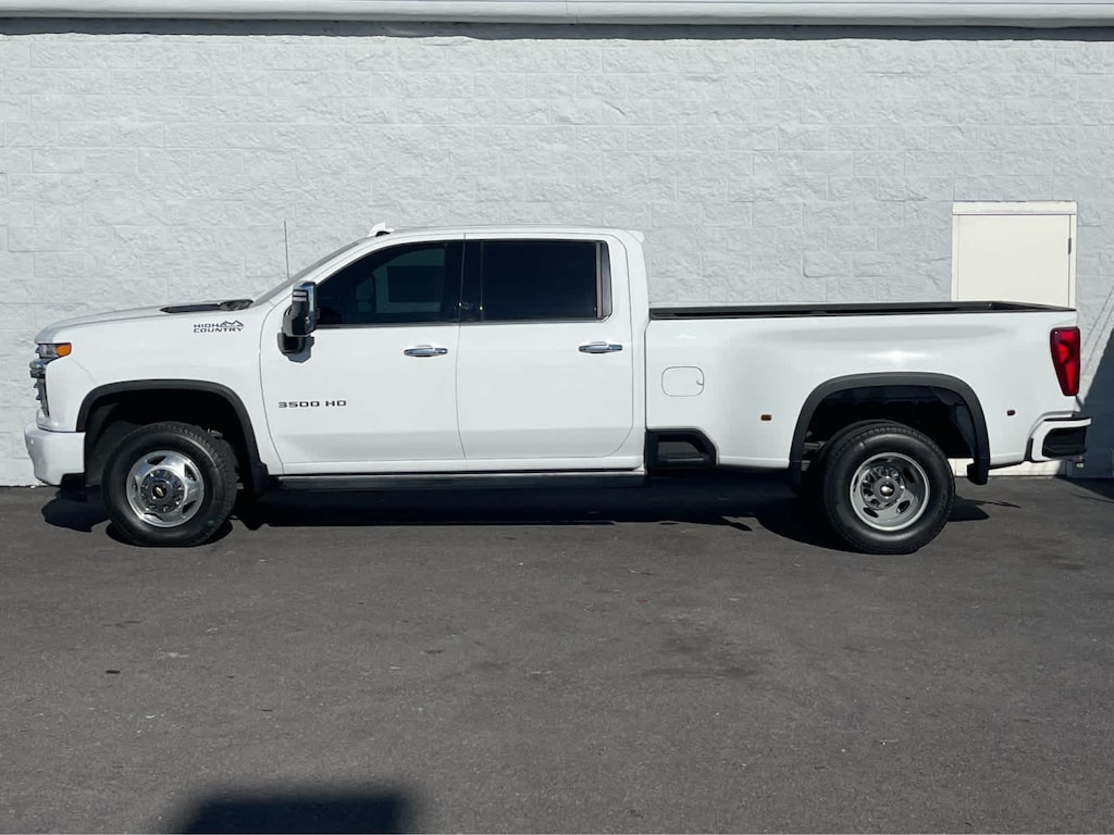 ENGINE, DURAMAX 6.6L TURBO-DIESEL V8, B20-DIESEL COMPATIBLE (445 hp [332 kW] @ 2800 rpm, 910 lb-ft of torque [1220 Nm] @ 1600 rpm), TECHNOLOGY PACKAGE includes (DRZ) Rear Camera Mirror and (UV6) 15 Diagonal Head-Up Display, ASSIST STEPS, POWER-RETRACTABLE, WITH BRIGHT TRIM includes LED lighting, SAFETY PACKAGE II includes (UEU) Forward Collision Alert, (UFL) Lane Departure Warning, (UHY) Automatic Emergency Braking, (TQ5) IntelliBeam headlamps, (UE4) Following Distance Indicator and (HS1) Safety Alert Seat, GOOSENECK / 5TH WHEEL PREP PACKAGE -- Hitch platform to accept Gooseneck or 5th Wheel hitch. Includes hitch platform with tray to accept ball, stamped bed holes with removable caps installed and bed mounted 7-pin trailer harness (similar to UY2 harness). GVWR, 14,000 LBS. (6350 KG) WITH DUAL REAR WHEELS, AUDIO SYSTEM, CHEVROLET INFOTAINMENT 3 PREMIUM SYSTEM WITH CONNECTED NAVIGATION, 8 DIAGONAL HD COLOR TOUCHSCREEN, AM/FM STEREO Bluetooth® audio streaming for 2 active devices, wireless Apple CarPlay® and Android Auto® capable, enhanced voice recognition, additional memory for in-vehicle apps, cloud connected personalization for select infotainment and vehicle settings. Subscription required for enhanced and connected services after trial period. (STD) (Includes (PZ8) Hitch Guidance with Hitch View.), TRANSMISSION, ALLISON 10-SPEED AUTOMATIC. Chevrolet High Country with Summit White exterior and Jet Black interior features a 8 Cylinder Engine with 401 HP at 5200 RPM*.