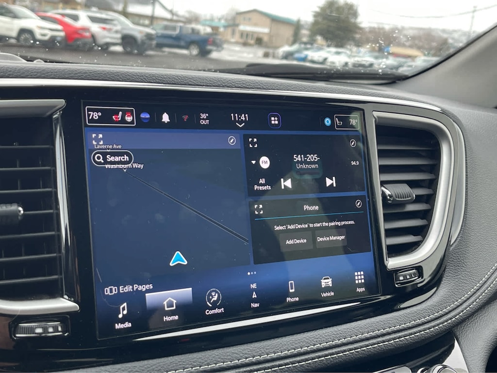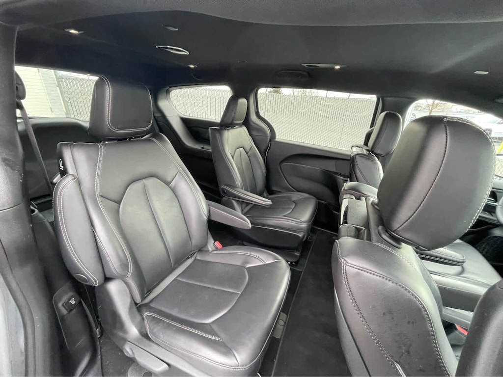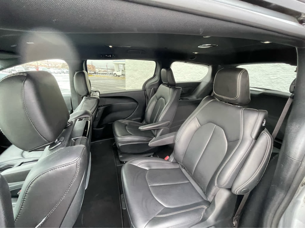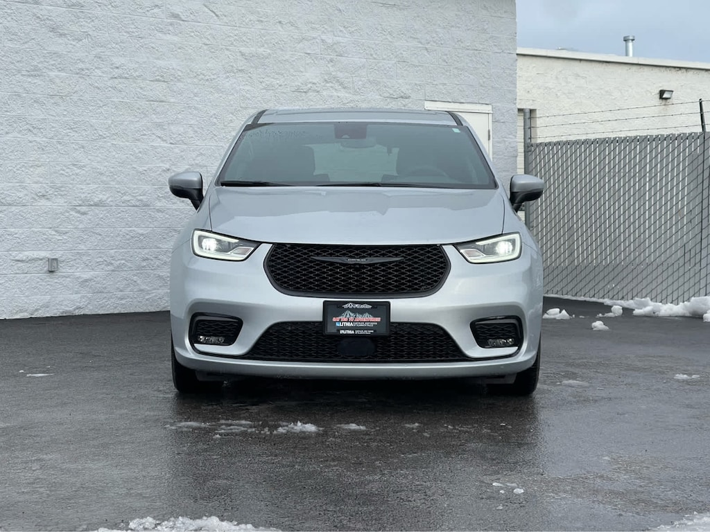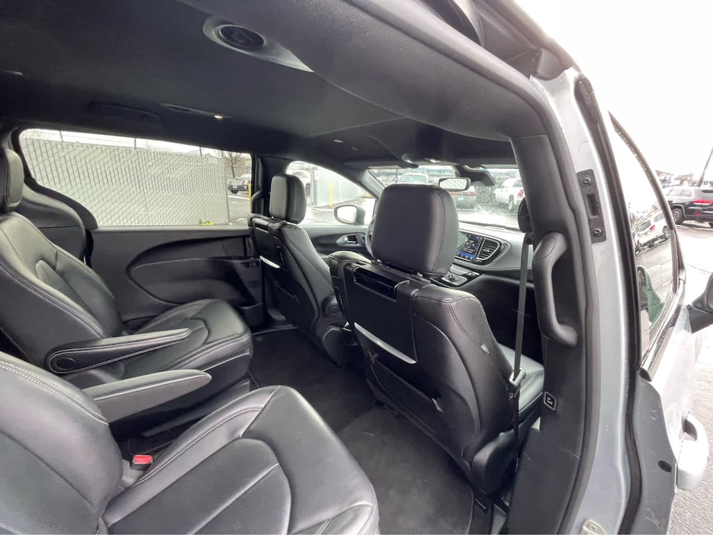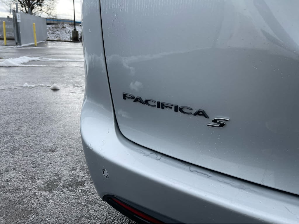 UCONNECT THEATER FAMILY GROUP Video USB Port, Rear View Auto Dim Mirror, For Details, Visit DriveUconnect.com, Integrated Voice Command w/Bluetooth®, Power 2-Way Passenger Lumbar Adjust, GPS Navigation, 506 Watt Amplifier, High Definition Multimedia Interface, Front Passenger Auto Advance N Return, SiriusXM w/360L, 3-Channel Video Remote Control, Seatback Video Screens, 3rd Row USB Charge Port, Front/Rear 1-Touch Up/Down Power Windows, FamCAM Interior Camera, Power Adjust 8-Way Front Passenger Seat, Amazon Fire TV Built-In, Radio: Uconnect 5 Nav w/10.1 Display, 13 Alpine Speakers, KeySense, HD Radio, SiriusXM Guardian - Included Trial (B), Global Telematics Box Module (TBM), 4G LTE Wi-Fi Hot Spot, Hands Free Sliding Doors, Hands Free Power Liftgate, 115V Auxiliary Power Outlet, S APPEARANCE PACKAGE Black Day Light Opening Moldings, Piano Black Interior Accents, Premium Fascia Upper/Lower Grille w/Black Surround, Premium Rear Fascia Black, Anodized Ice Cave Accents, Wheels: 18 x 7.5 S-Model Aluminum Design 3, Anodized Ink Badging, Tires: 235/60R18 BSW AS, S Badge, TRANSMISSION: EFLITE SI-EVT (STD), ENGINE: 3.6L V6 PLUG-IN HYBRID (STD). Chrysler Hybrid Touring L with Silver Mist Clearcoat exterior and Black interior features a V6 Cylinder Engine.