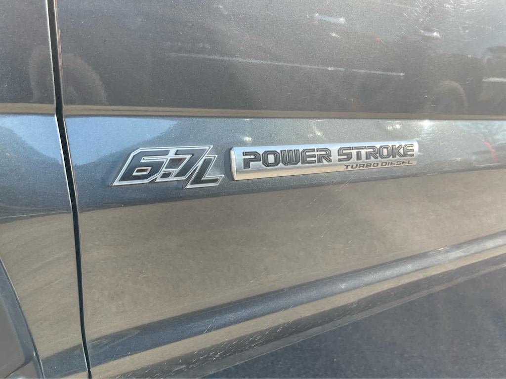 ENGINE: 6.7L 4V OHV POWER STROKE V8 TURBO DIESEL B20 4 valve OHV, manual push-button engine-exhaust braking and intelligent oil-life monitor, Extra Heavy-Duty 220 Amp Alternator, 34 Gallon Fuel Tank, 3.31 Axle Ratio, Dual 78-AH 750 CCA Batteries, LARIAT ULTIMATE PACKAGE Power Heated/Cooled Driver Seat w/Memory, PowerScope Trailer Tow Mirrors w/Memory, Automatic High Beam, rain-sensing windshield wipers, EASY ENTRY®/Exit Memory Drivers Seat Feature, Tailgate Step & Handle, LED Box Lighting, LED Center High-Mounted Stop Lamp (CHMSL), Intelligent Access w/Push-Button Start, Power Heated/Cooled Passenger Seat, Voice-Activated Navigation, HD and SiriusXM Traffic and Travel Link, NOTE: SiriusXM Traffic and Travel Link includes a, Services are not available in Alaska and Hawaii, Memory Power-Adjustable Pedals, Remote Start System, Twin Panel Power Moonroof, map lights and moonroof switches, Ambient Lighting, Power Telescoping/Tilt Steering Wheel/Column, heat, memory and audio controls, Remote Tailgate Release, CHROME PACKAGE Wheels: 18 Chrome PVD Aluminum, Body-Color Door Handles w/Chrome Insert, Unique Chrome Mirror Caps, 6 Angular Chrome Step Bars, Chrome Exhaust Tip, BLIND SPOT INFORMATION SYSTEM (BLIS) cross-traffic alert and trailer tow (BLIS sensor in taillamp), ELECTRONIC-LOCKING W/3.55 AXLE RATIO, TRANSMISSION: TORQSHIFT 6-SPEED AUTOMATIC (6R140), SelectShift. Ford Lariat with Magnetic exterior and Black interior features a 8 Cylinder Engine with 440 HP at 2800 RPM*.