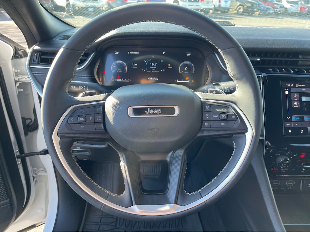 QUICK ORDER PACKAGE 23B ALTITUDE Engine: 3.6L V6 24V VVT UPG I w/ESS, Transmission: 8-Speed Automatic (8HP50), Selectable Tire Fill Alert, Remote Start System, Rain Sensitive Windshield Wipers, Wireless Charging Pad, Heated Front Seats, Altitude Appearance Package, Black Headliner, Delete Laredo Badge, 3rd Row Charge-Only USB Ports, 115V Auxiliary Power Outlet, Gloss Black Exterior Accents, Heated Steering Wheel, Power Liftgate, WHEELS: 20 X 8.5 GLOSS BLACK PAINTED ALUMINUM Tires: 265/50R20 BSW A/S LRR, 2ND ROW 60/40 BENCH W/MANUAL TIP/SLIDE 3 Rear Seat Head Restraints, Center Rear 3-Point Seat Belt, 7 Passenger Seating, 2nd Row Seat Center Armrest/Cupholders, TRANSMISSION: 8-SPEED AUTOMATIC (8HP50), ENGINE: 3.6L V6 24V VVT UPG I W/ESS (STD). Jeep Altitude with Bright White Clearcoat exterior and Global Black interior features a V6 Cylinder Engine with 293 HP at 6400 RPM*.