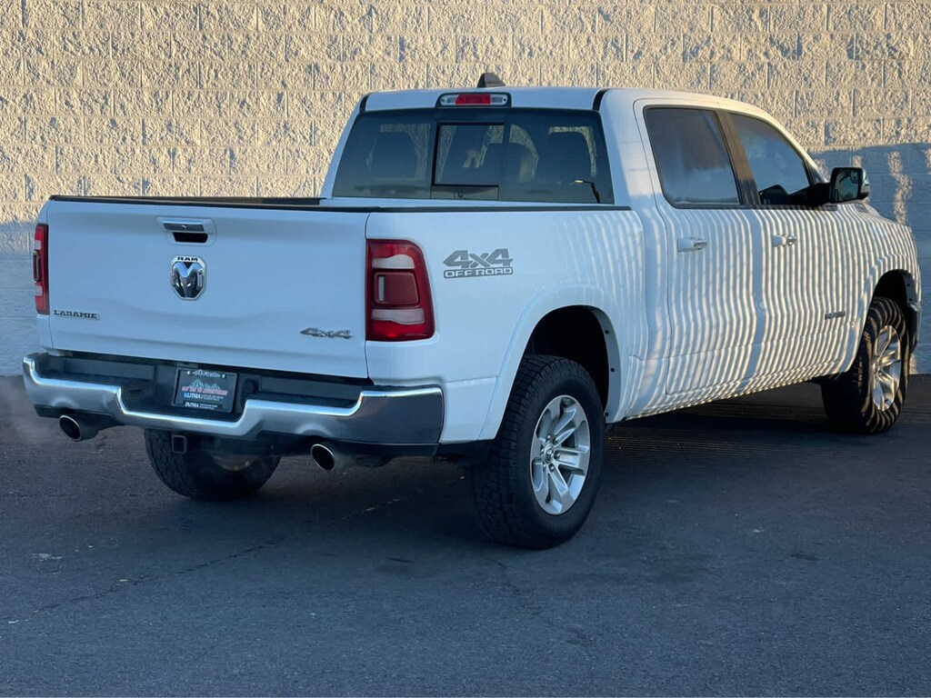 ENGINE: 5.7L V8 HEMI MDS VVT ETORQUE Active Noise Control System, Heavy Duty Engine Cooling, GVWR: 7,100 lbs, Dual Rear Exhaust w/Bright Tips, Hemi Badge, 23 Gallon Fuel Tank, 18 Aluminum Spare Wheel, OFF ROAD GROUP Off Road Decals, Steering Gear Skid Plate, Front Suspension Skid Plate, Front Extra HD Shock Absorbers, Rear Extra HD Shock Absorbers, Tire: Full Size Spare, Tow Hooks, E-Locker Rear Axle, Transfer Case Skid Plate, Fuel Tank Skid Plate, Hill Descent Control, TRANSMISSION: 8-SPEED AUTOMATIC (8HP75). Ram Laramie with Bright White Clearcoat exterior and Black interior features a 8 Cylinder Engine with 305 HP at 6400 RPM*.