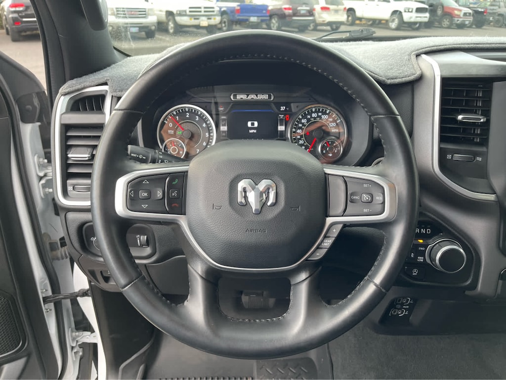 BIG HORN LEVEL 1 EQUIPMENT GROUP Google Android Auto®, SiriusXM Radio Service, Bluetooth® Handsfree Phone & Audio, USB Host Flip, Rear Window Defroster, For Details, Visit DriveUconnect.com, Integrated Center Stack Radio, Rear View Auto Dim Mirror, Power Adjustable Pedals, Rear Power Sliding Window, Rear Dome w/On/Off Switch Lamp, Connectivity - US/Canada, Glove Box Lamp, 4G LTE Wi-Fi Hot Spot, Exterior Mirrors w/Heating Element, Power 8-Way Driver Seat, Auto Dim Exterior Driver Mirror, Radio: Uconnect 5 W w/8.4 Display, 8.4 Touchscreen Display, Class IV Receiver Hitch, Black Premium Power Mirrors, Apple CarPlay®, Big Horn IP Badge, SiriusXM Satellite Radio, Exterior Mirrors w/Supplemental Signals, Exterior Mirrors Courtesy Lamps, Universal Garage Door Opener, Cluster 3.5 TFT Color, WHEELS: 20 X 9 ALUMINUM CHROME CLAD (WRK), REMOTE START SYSTEM, TRANSMISSION: 8-SPEED AUTOMATIC (850RE) (STD), ENGINE: 3.6L V6 24V VVT ETORQUE UPG I (STD).
