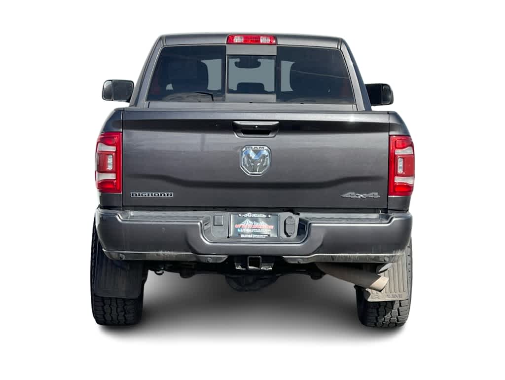 ENGINE: 6.7L I6 CUMMINS TURBO DIESEL Selective Catalytic Reduction (Urea), Dual 730 Amp Maintenance Free Batteries, Cummins Turbo Diesel Badge, Heavy Duty Engine Cooling, Supplemental Heater, Tow Hooks, Diesel Exhaust Brake, Front Bumper Sight Shields, Capless Fuel Fill w/o Discriminator, Distribution Services Tracking, LEVEL C EQUIPMENT GROUP Rear Window Defroster, Rear View Auto Dim Mirror, LED Tail Lamps, Power Adjustable Pedals, Leather Wrapped Steering Wheel, Rear Power Sliding Window, Rear Dome w/On/Off Switch Lamp, Front Fog Lamps, Glove Box Lamp, Footwell Courtesy Lamp, 115V Auxiliary Rear Power Outlet, Media Hub w/2 Charge Only USBs, Heated Front Seats, Heated Steering Wheel, Foam Bottle Insert (Door Trim Panel), Wheels: 18 x 8.0 Polished Aluminum, Dampened Tailgate, Security Alarm, Big Horn IP Badge, Locking Lower Glove Box, Remote Start System, Steering Wheel Mounted Audio Controls, Dual Glove Boxes, Air Conditioning ATC w/Dual Zone Control, Universal Garage Door Opener, 115V Auxiliary Front Power Outlet, Exterior 115V AC Outlet, 400W Inverter, Cluster 7.0 TFT Color Display, 2nd Row In Floor, RADIO: UCONNECT 5 NAV W/8.4 DISPLAY Off-Road Information Pages, Disassociated Touchscreen Display, HD Radio, For Details, Visit DriveUconnect.com, For More Info, Call 800-643-2112, Air Conditioning ATC w/Dual Zone Control, GPS Navigation, SiriusXM w/360L, All Radio Equipped Vehicles, Connected Travel & Traffic Services, All R1 High Radios, Alexa Built-In, MOPAR SPRAY IN BEDLINER, 9 ALPINE SPEAKERS W/SUBWOOFER, ANTI-SPIN DIFFERENTIAL REAR AXLE, TRANSMISSION: 6-SPEED AUTOMATIC (68RFE) Chrome Accent Shift Control.