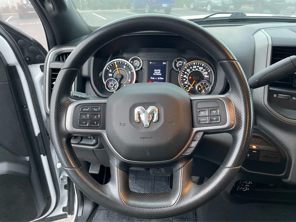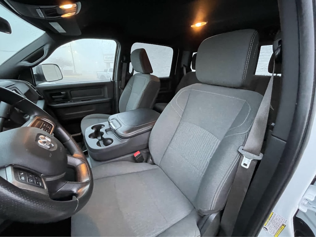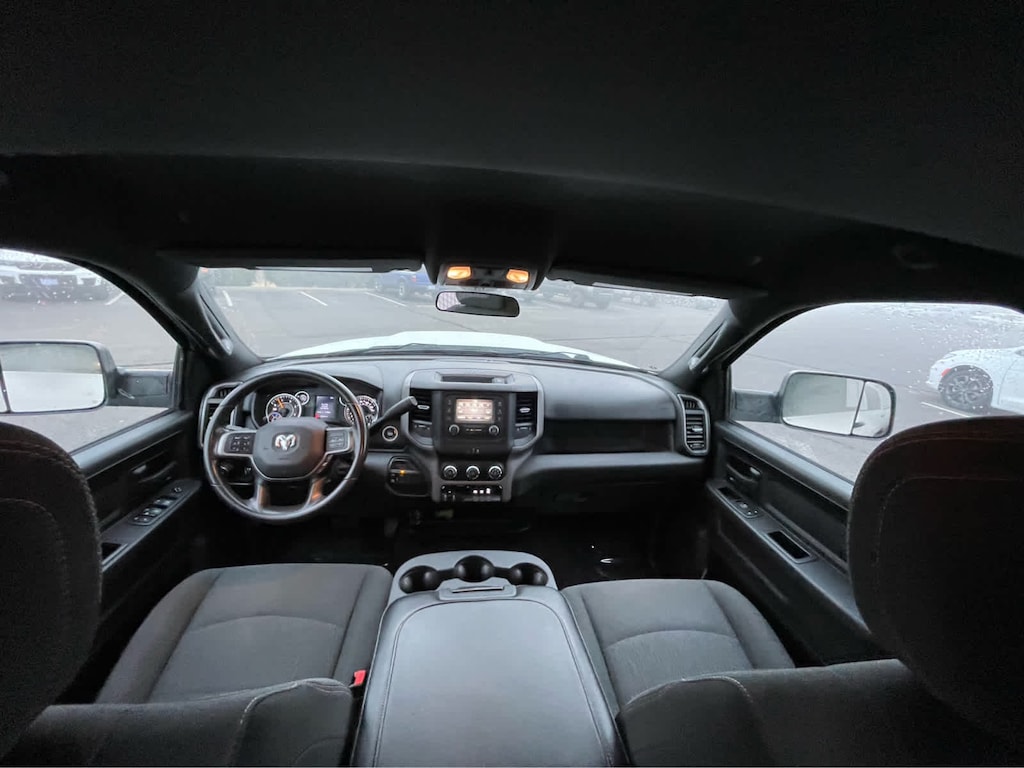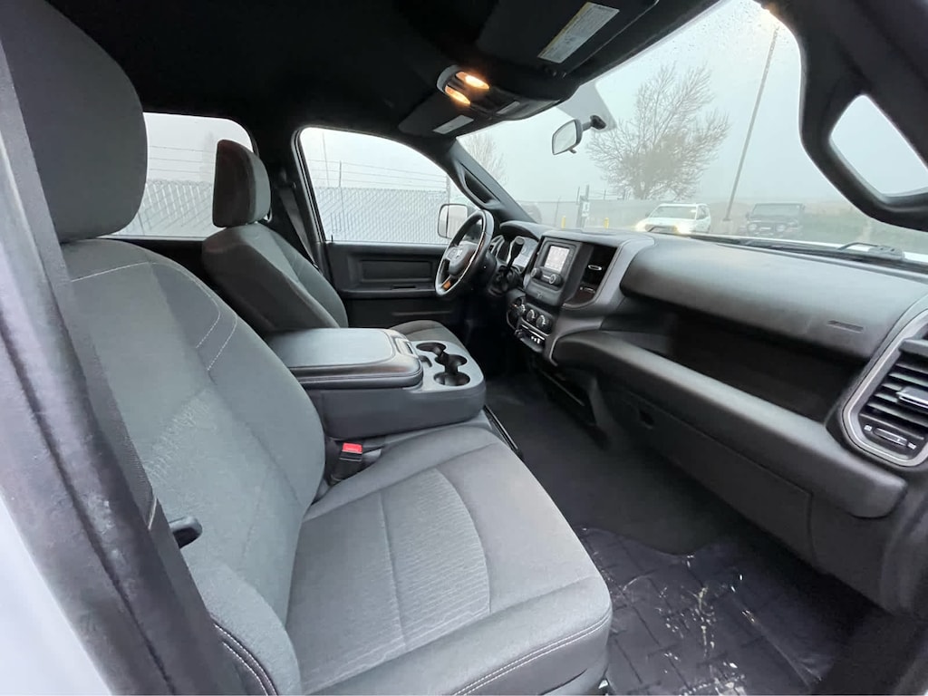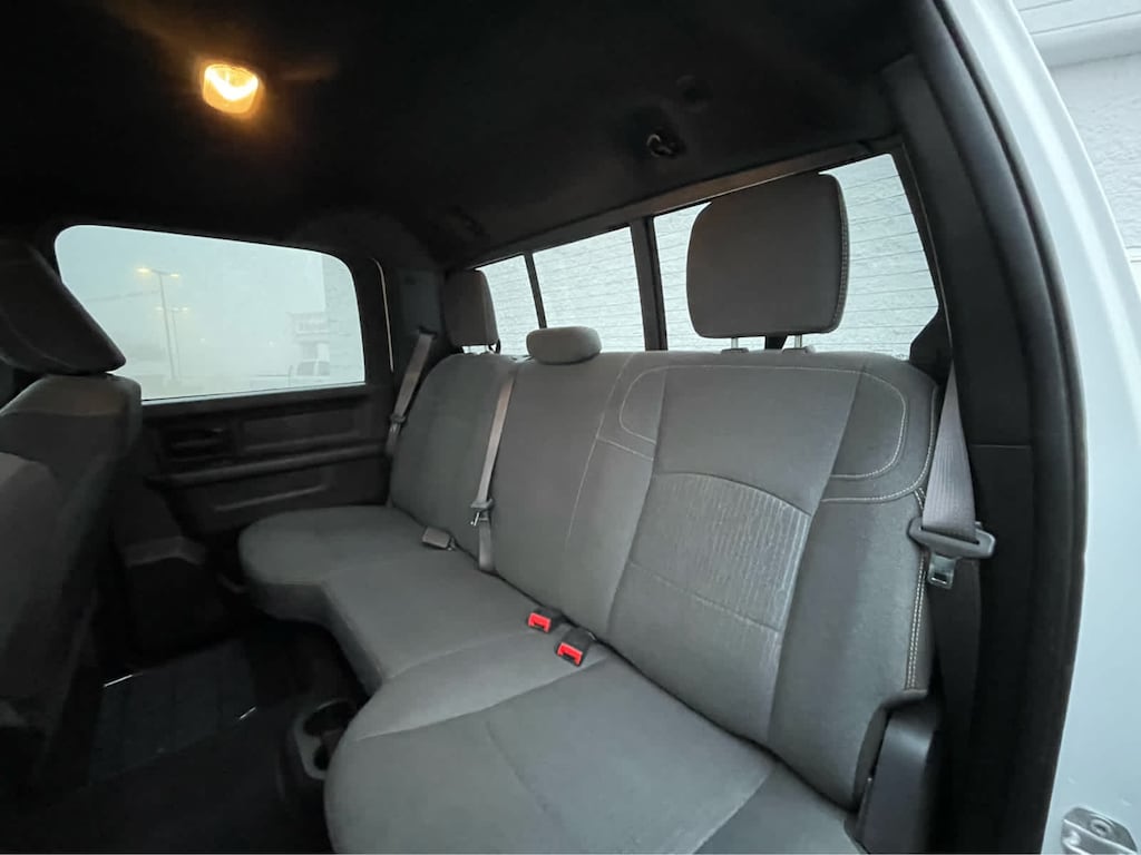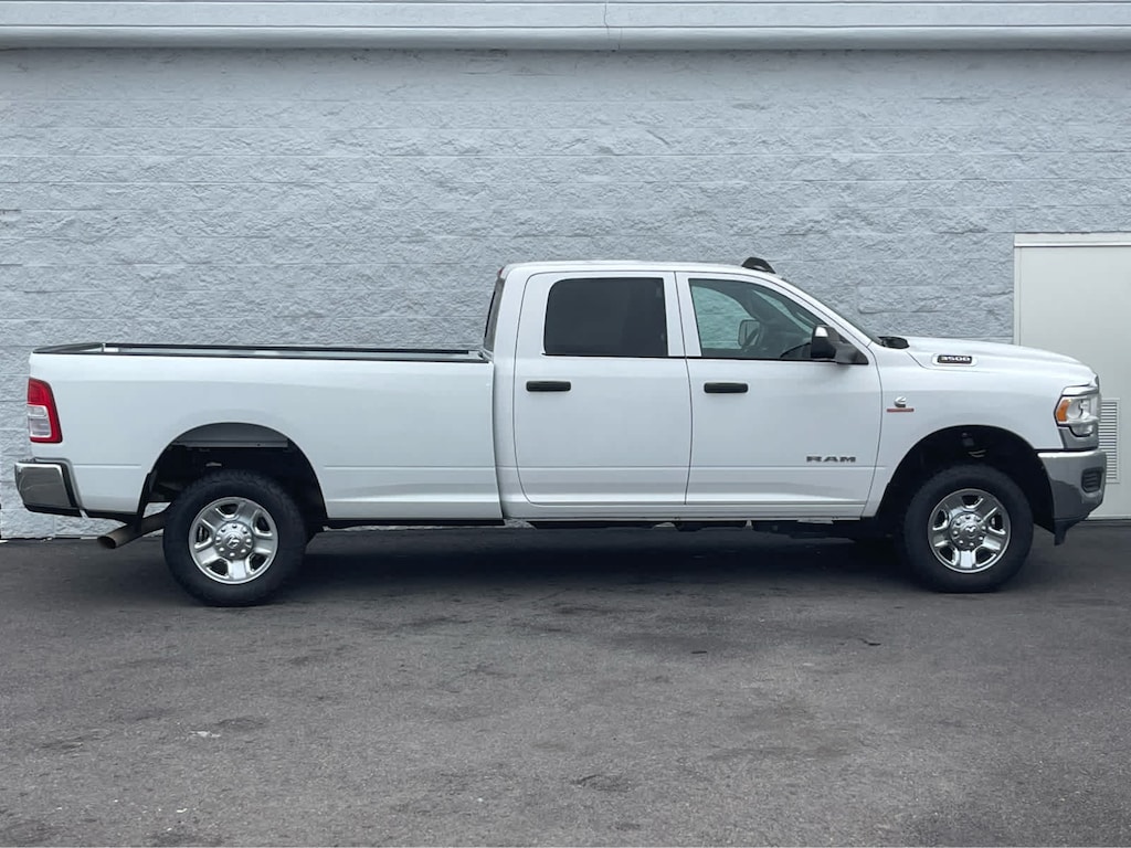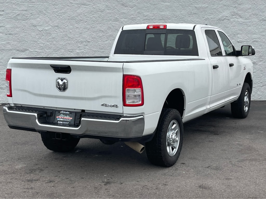 ENGINE: 6.7L I6 CUMMINS TURBO DIESEL Selective Catalytic Reduction (Urea), Dual 730 Amp Maintenance Free Batteries, Cummins Turbo Diesel Badge, Heavy Duty Engine Cooling, Supplemental Heater, GVWR: 12,300 lbs, Current Generation Engine Controller, Diesel Exhaust Brake, Capless Fuel Fill w/o Discriminator, Distribution Services Tracking, TRADESMAN LEVEL 2 EQUIPMENT GROUP Rear Window Defroster, Carpet Floor Covering, Rear Power Sliding Window, PARKSENSE REAR PARK ASSIST SYSTEM, TRANSMISSION: 6-SPEED AUTOMATIC 68RFE Urethane Shift Control, BLACK, CLOTH 40/20/40 BENCH SEAT. Ram Tradesman with Bright White Clearcoat exterior and Black interior features a Straight 6 Cylinder Engine with 410 HP at 5600 RPM*.