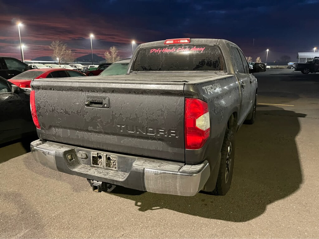 TRD OFF ROAD PACKAGE Tires: P275/65R18 Michelin LTX All Terrain, BF Goodrich, Wheels: 18 x 8J Split 5-Spoke TRD Off-Road Alloy, black accents, Trail-Tuned Bilstein Shock Absorbers, Engine & Fuel Tank Skid Plates, TRD Off-Road Graphics, SR5 UPGRADE PACKAGE front center console w/3 cupholders and replaces standard equipment column shifter w/floor mounted urethane shift lever and knob, Compass, Anti-Theft Immobilizer w/Alarm, Urethane Tilt/Telescopic Steering Wheel, Auto-Dimming Rearview Mirror, 38 Gallon Fuel Tank Capacity, Front Bucket Seats, 8-way power adjustable drivers seat w/power lumbar support and 4-way manual adjustable front passenger seat, HomeLink Universal Transceiver, RADIO: ENTUNE AM/FM/HD W/CD PLAYER integrated navigation system, MP3/WMA playback capability, AM/FM cache radio, 9 speakers, high-resolution 7 touch-screen w/split screen display, auxiliary audio jack, USB 2.0 port, iPod connectivity and control, Gracenotes album cover art, HD predictive traffic and doppler weather overlay, Bluetooth® hands-free phone capability, phone book access, advanced voice recognition and music streaming, Siri Eyes Free and integrated backup camera display, Entune App Suite, includes Bing, iHeartRadio, MovieTickets.com, OpenTable, Pandora, Yelp and Facebook Places; real-time info including traffic, weather, fuel prices, sports and stocks, SIRIUSXM Satellite Radio, all access radio w/. Toyota SR5 with Magnetic Gray Metallic exterior and GRAPHITE interior features a 8 Cylinder Engine with 381 HP at 5600 RPM*.